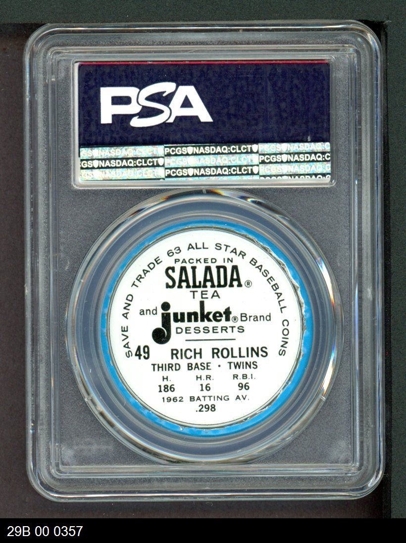 | 1963 Salada Metal Coins #49 Rich Rollins | PSA 7 - NM | Front | Back |