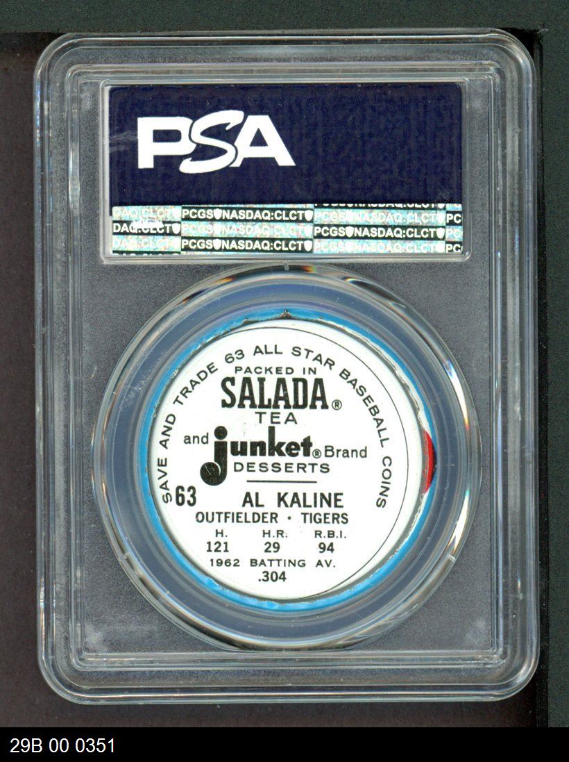 | 1963 Salada Metal Coins #63 Al Kaline | PSA 7 - NM | Front | Back |