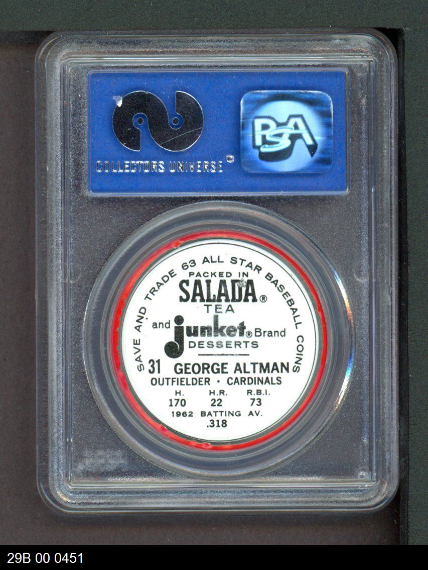 | 1963 Salada Metal Coins #31 George Altman | PSA 6 - EX/MT | Front | Back |