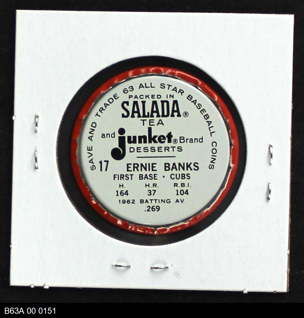 | 1963 Salada Metal Coins #17 Ernie Banks | 6 - EX/MT | Front | Back |