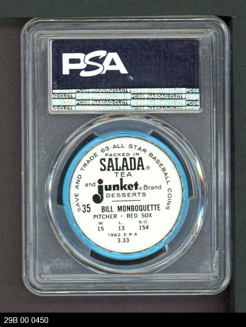 | 1963 Salada Metal Coins #35 Bill Monbouquette | PSA 6 - EX/MT | Front | Back |