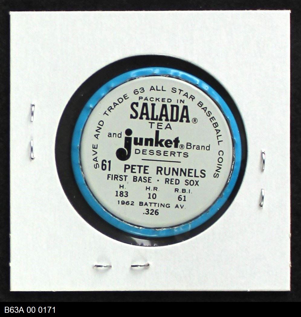 | 1963 Salada Metal Coins #61 Pete Runnels | 7 - NM | Front | Back |