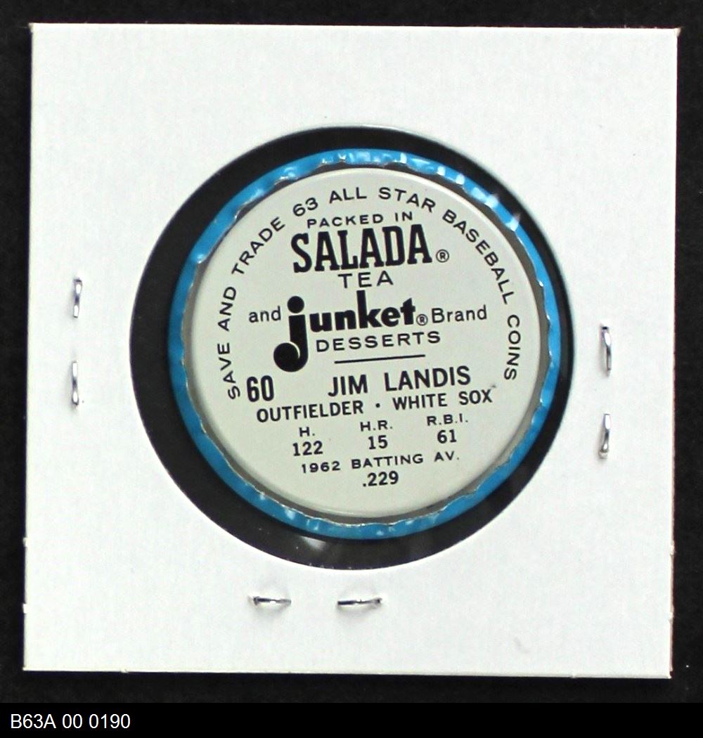 | 1963 Salada Metal Coins #60 Jim Landis | 7 - NM | Front | Back |
