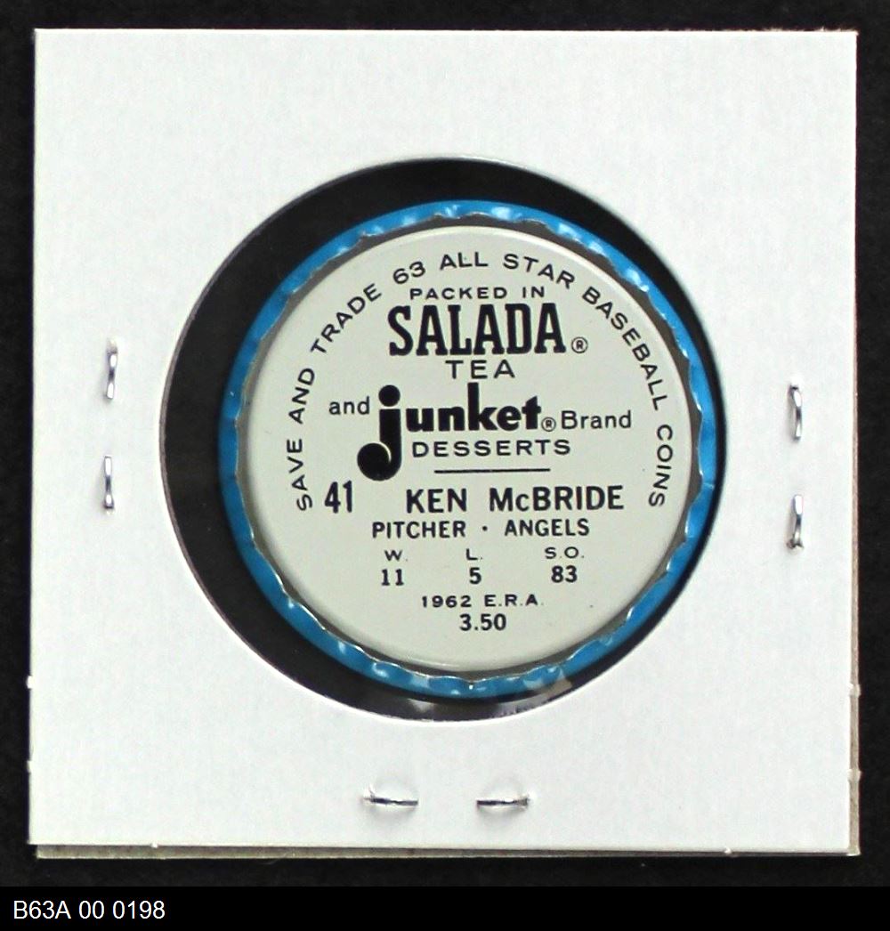 | 1963 Salada Metal Coins #41 Ken McBride | 6 - EX/MT | Front | Back |