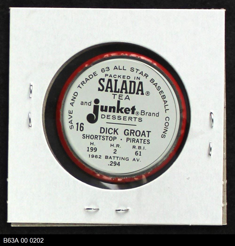 | 1963 Salada Metal Coins #16 Dick Groat | 6 - EX/MT | Front | Back |