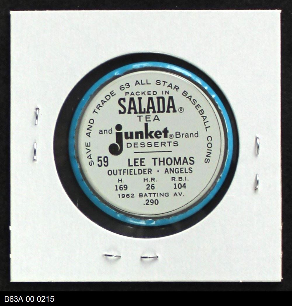 | 1963 Salada Metal Coins #59 Frank Thomas | 6 - EX/MT | Front | Back |