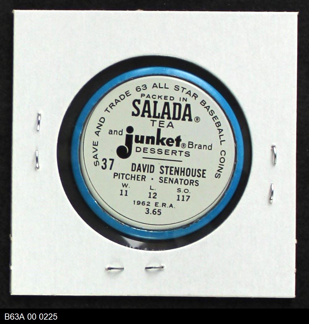 | 1963 Salada Metal Coins #37 Dave Stenhouse | 6 - EX/MT | Front | Back |