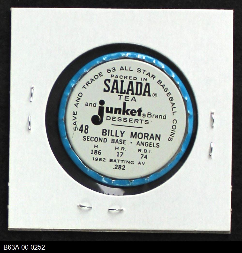 | 1963 Salada Metal Coins #48 Billy Moran | 5 - EX | Front | Back |