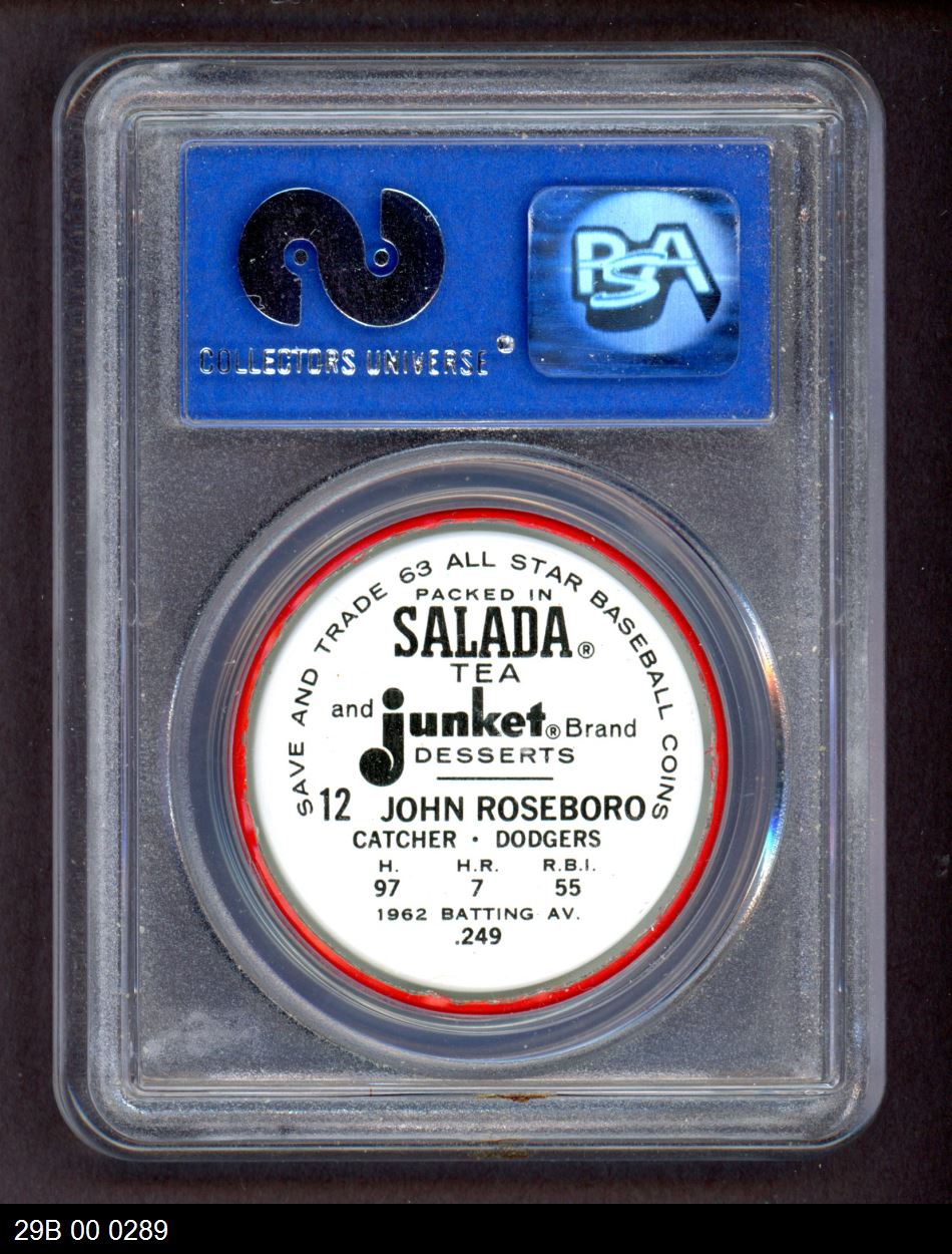 | 1963 Salada Metal Coins #12 John Roseboro | PSA 7 - NM | Front | Back |