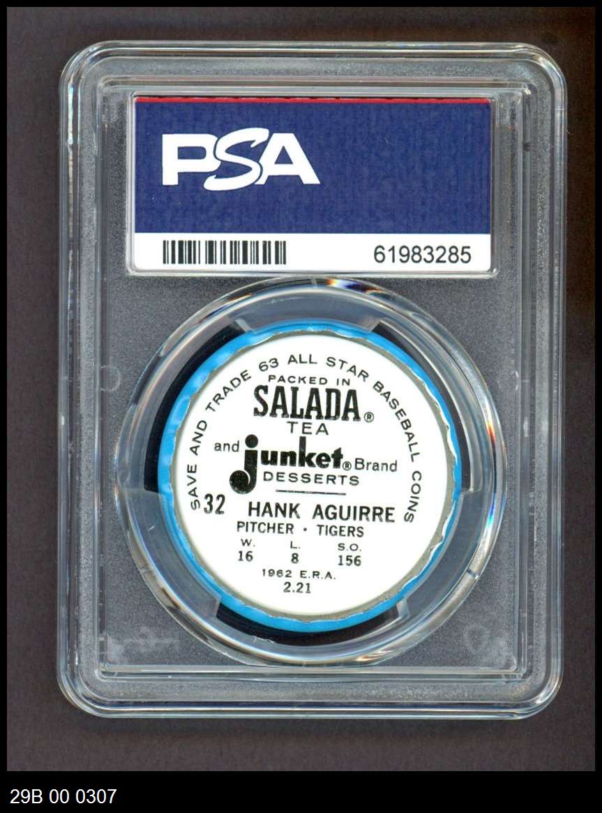 | 1963 Salada Metal Coins #32 Hank Aguirre | PSA 7 - NM | Front | Back |