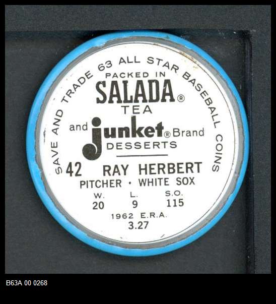 | 1963 Salada Metal Coins #42 Ray Herbert | 5 - EX | Front | Back |