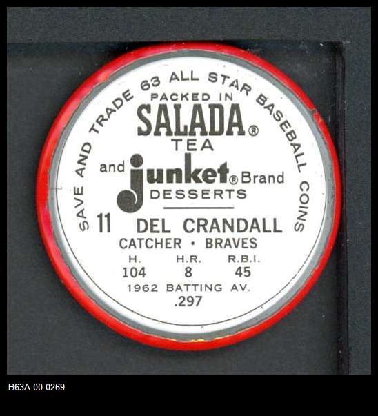 | 1963 Salada Metal Coins #11 Del Crandall | 5 - EX | Front | Back |