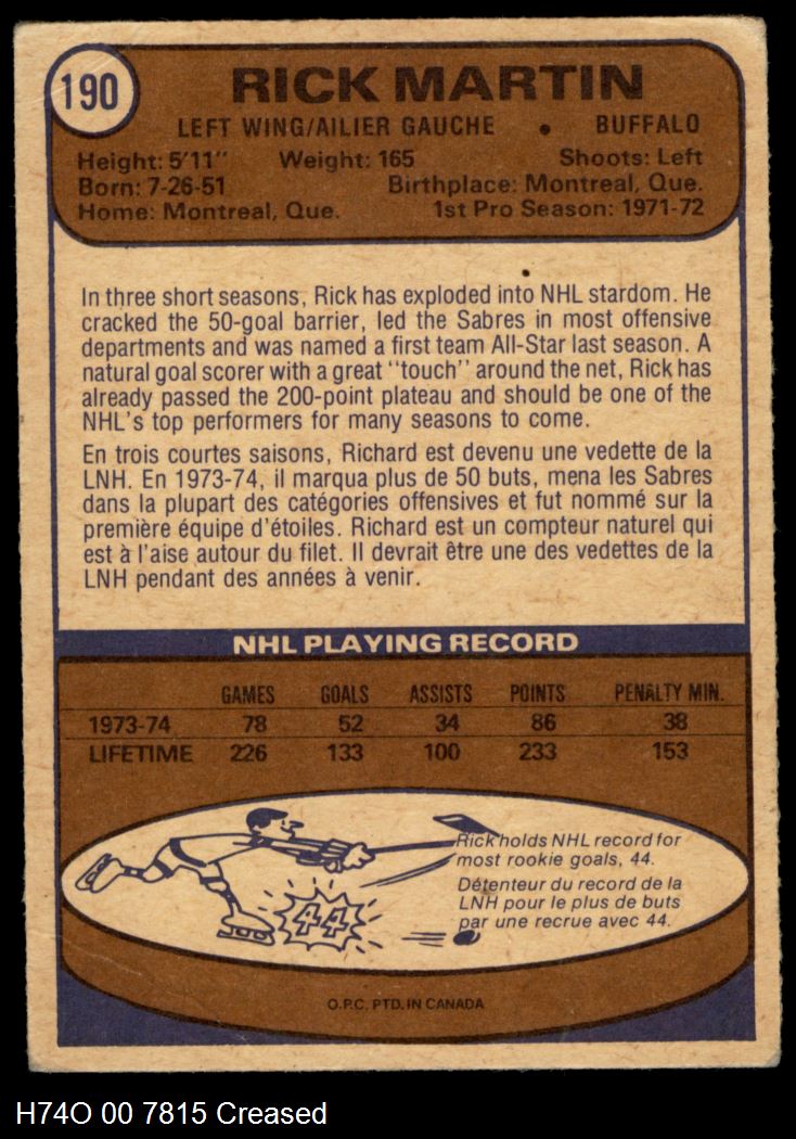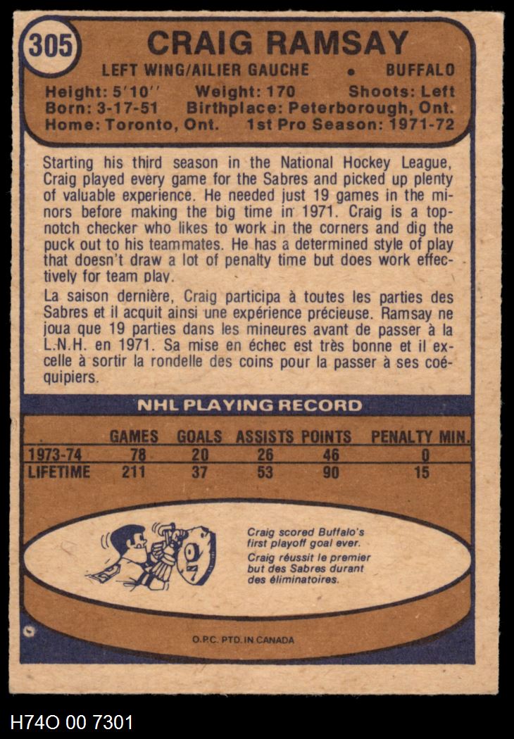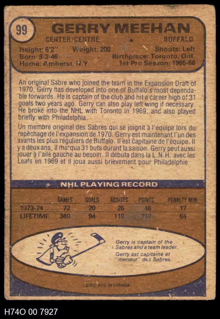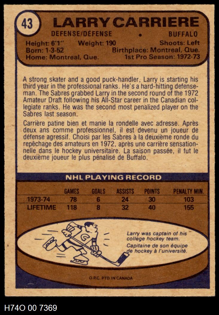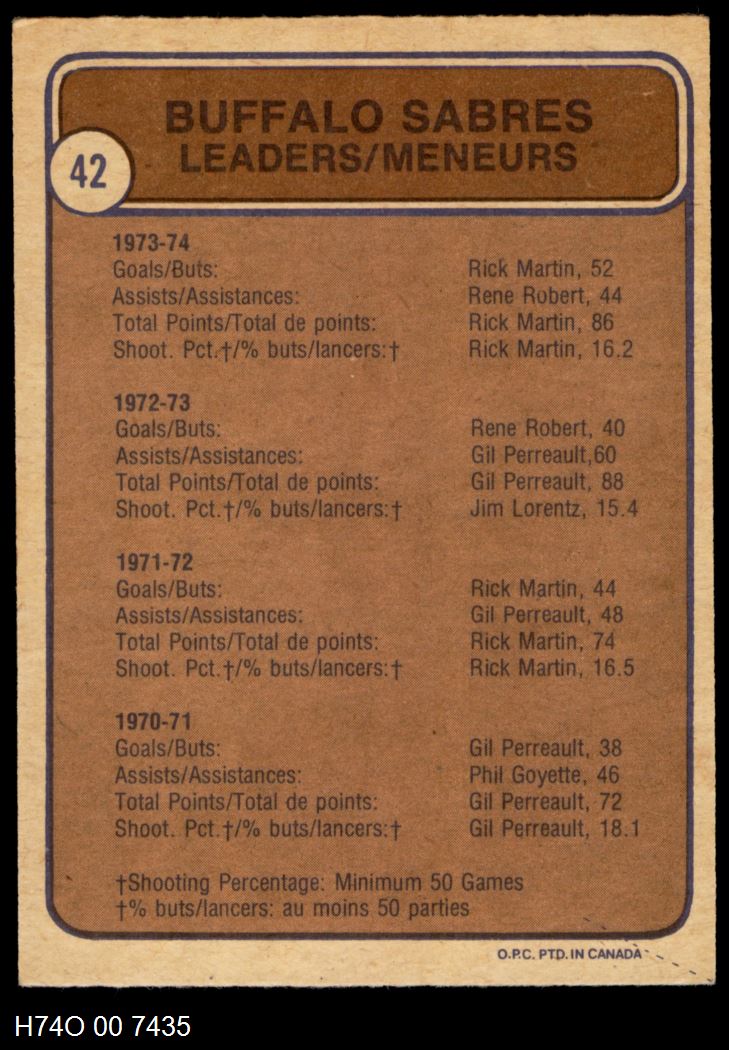 This 1974-75 O-Pee-Chee Buffalo Sabres Near Team Set contains the majority of the Buffalo Sabres cards and makes the perfect gift for the Buffalo Sabres fan. ?With an inventory of over 20,000 team sets, Dean's Cards has Team Sets & Near Team Sets in multiple conditions.