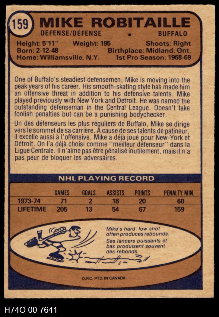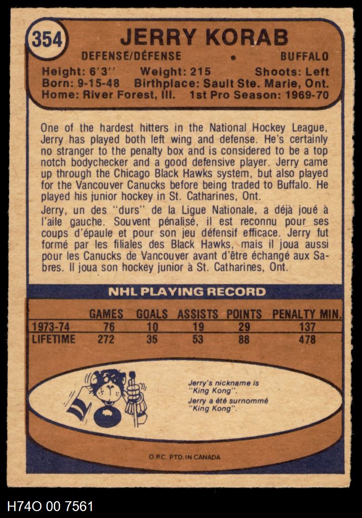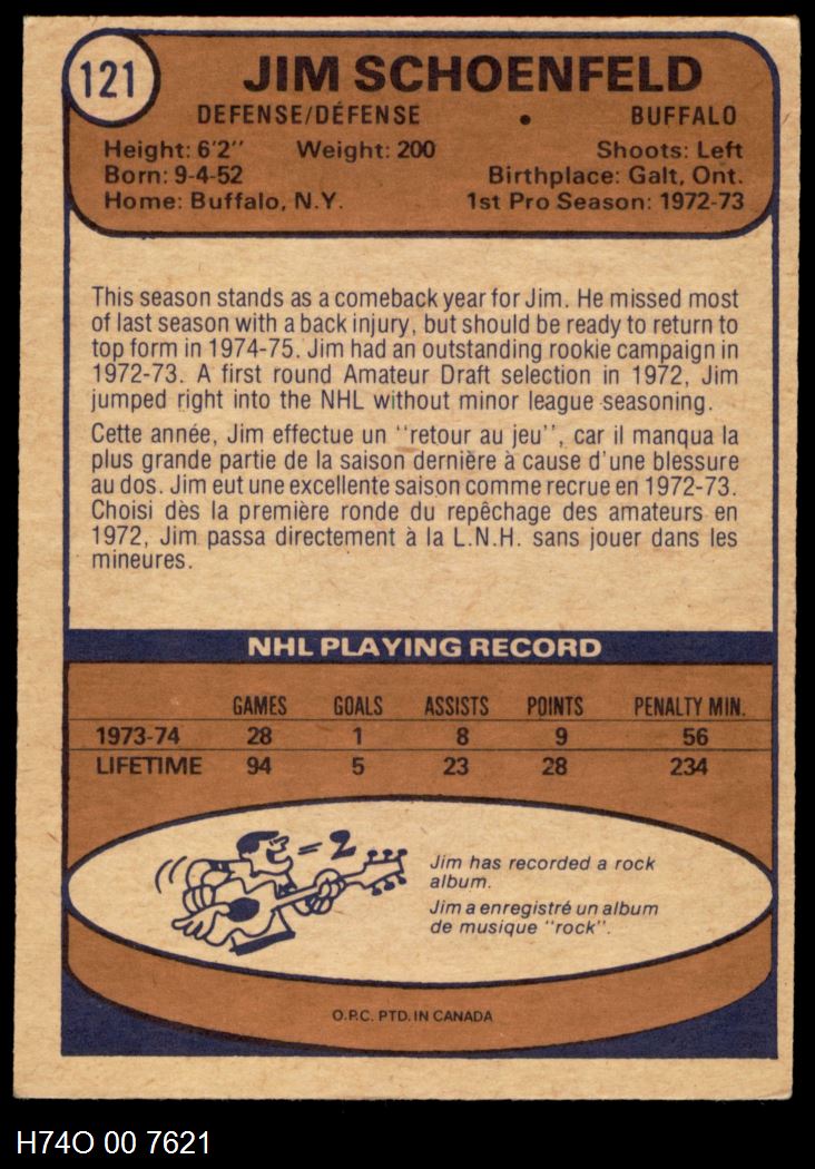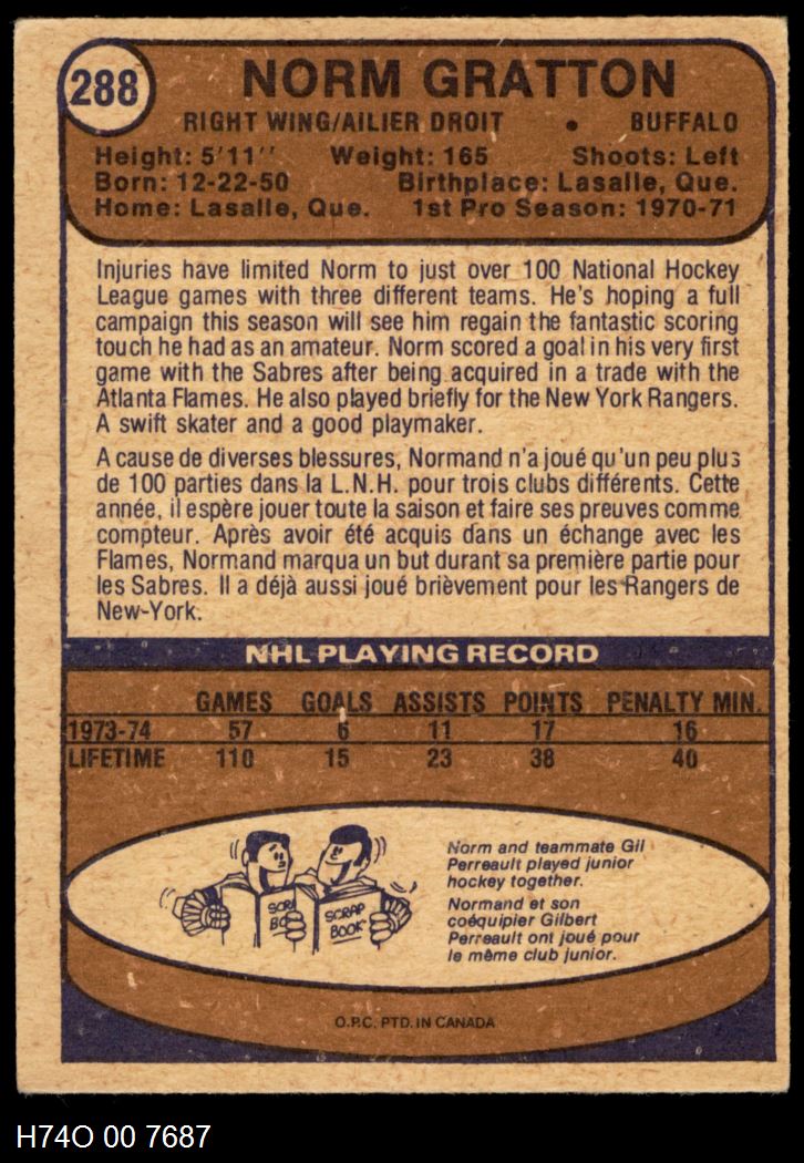 1974-75 O-Pee-Chee Buffalo Sabres Near Team Set 4 - VG/EX 6278998 (17 / 19 cards)