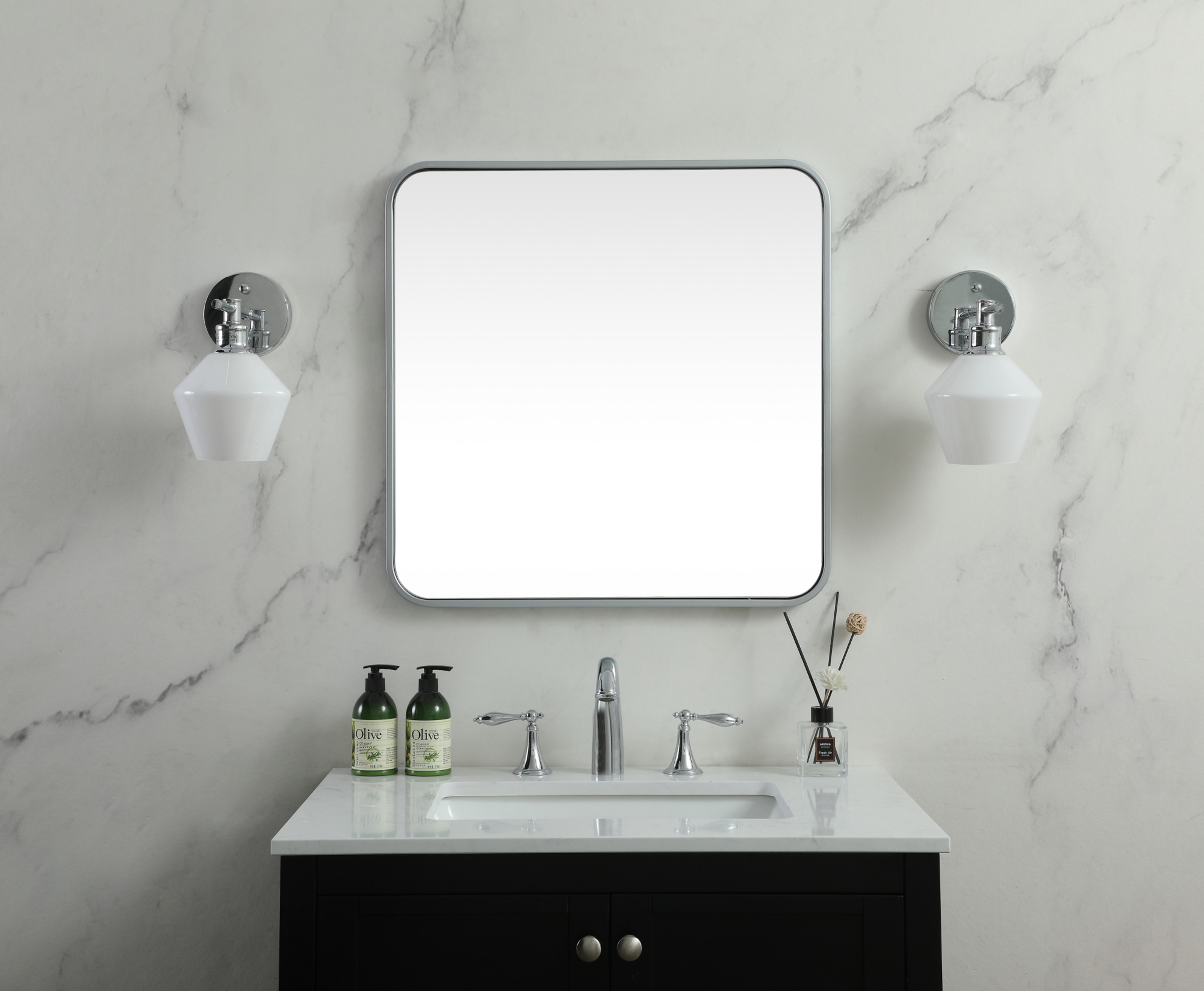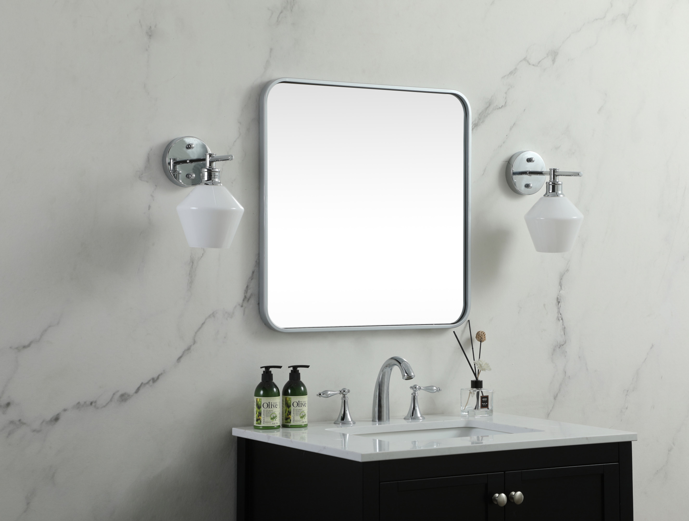 - The mirror is skillfully recessed into the frame, not only enhancing its aesthetic appeal but also providing added protection against accidental damage