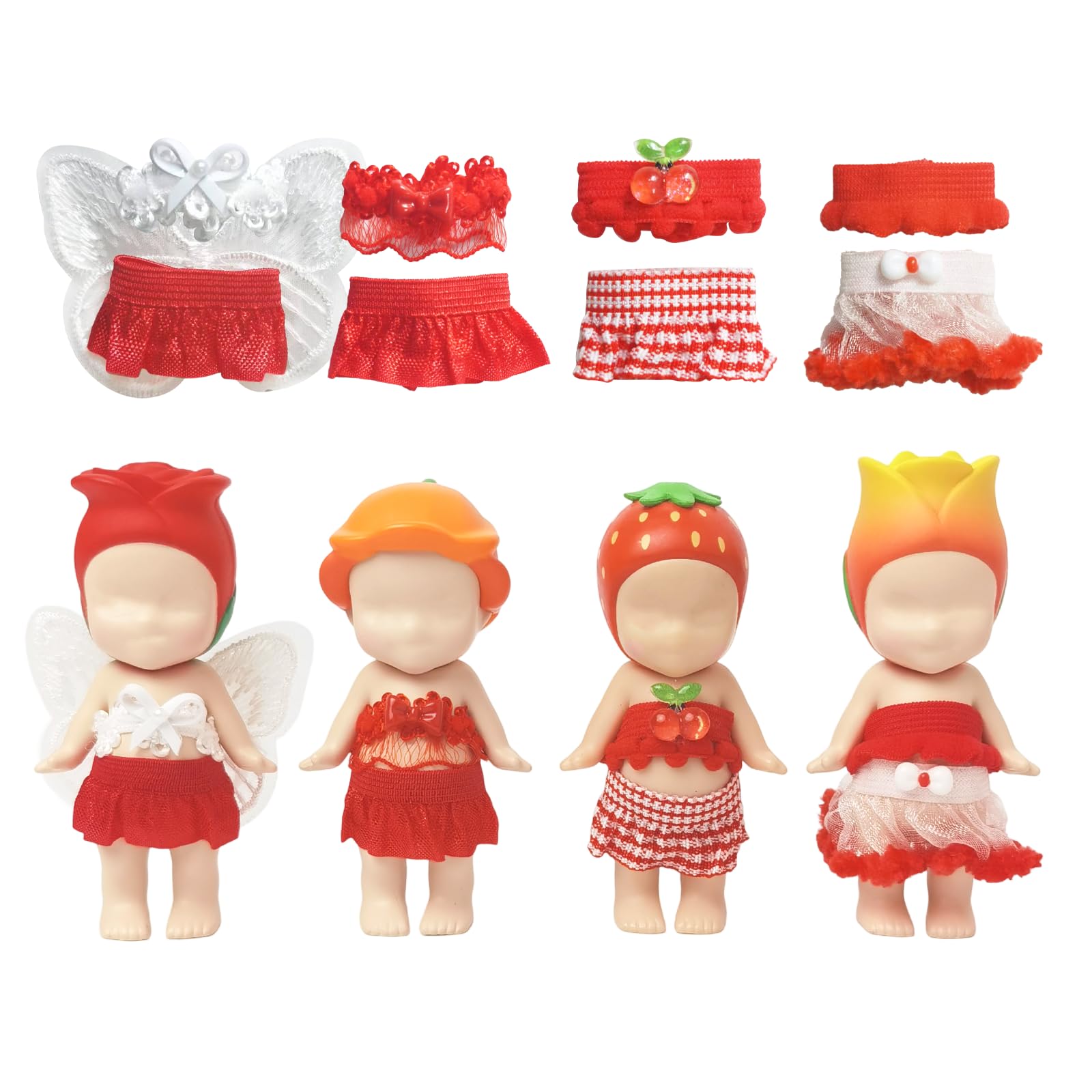 4 Sets Mini Doll Clothes for Sonny Angel, fit 3 3-inch, Wine Cherry Gala