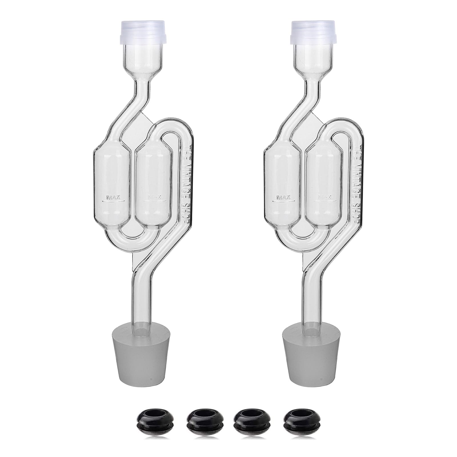 Bubble Airlock Set, 2 Airlocks for Fermenting, 2 Drilling #6 Stoppers and 4 Airlock Grommets, Used for Brewing Wine, Beer, Sauerkraut, Pickles, Etc. Fermentation Bubbler Airlock
