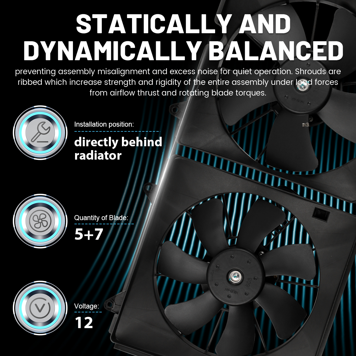 2PC Engine Radiator Cooling Fan Assembly for 2013-2017 Honda Accord 2.0L/2.4L/3.5L HO3113134 HO3115162