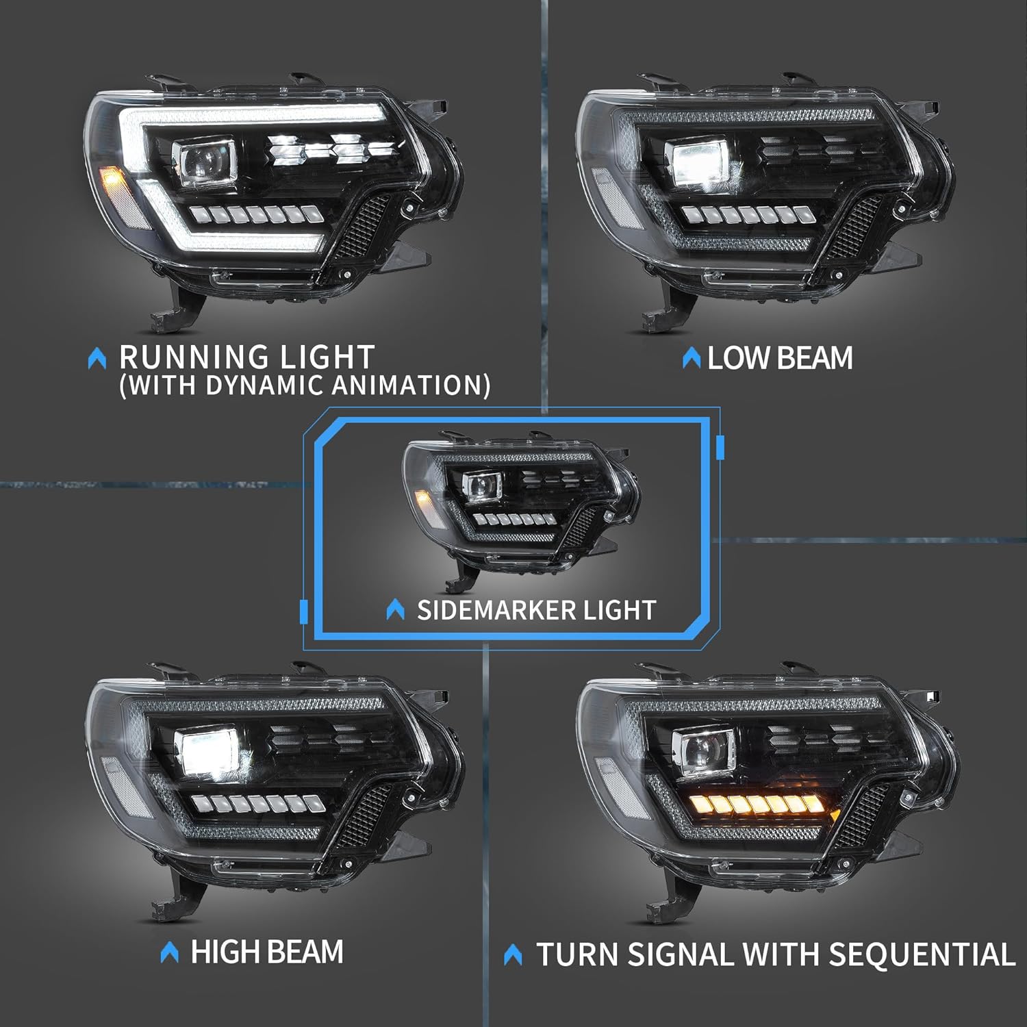 The package includes:1 pair of headlights with left side & right side.