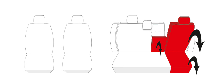 Les coutures utilisées dans les housses se déchirent lors du déclenchement des airbags et ne provoquent aucun retard dans leur fonctionnement. Grâce à cette solution, les housses recouvrent entièrement les sièges.