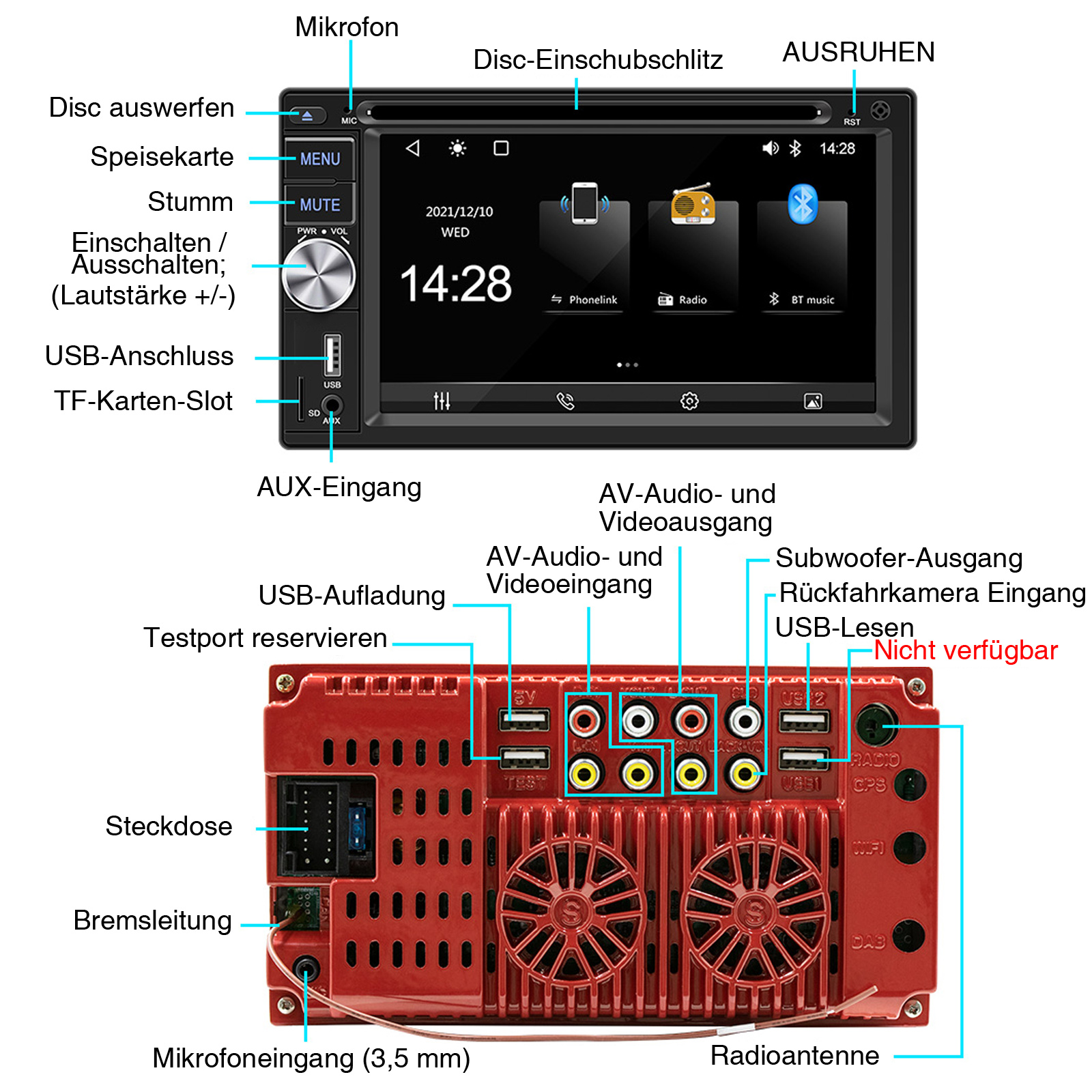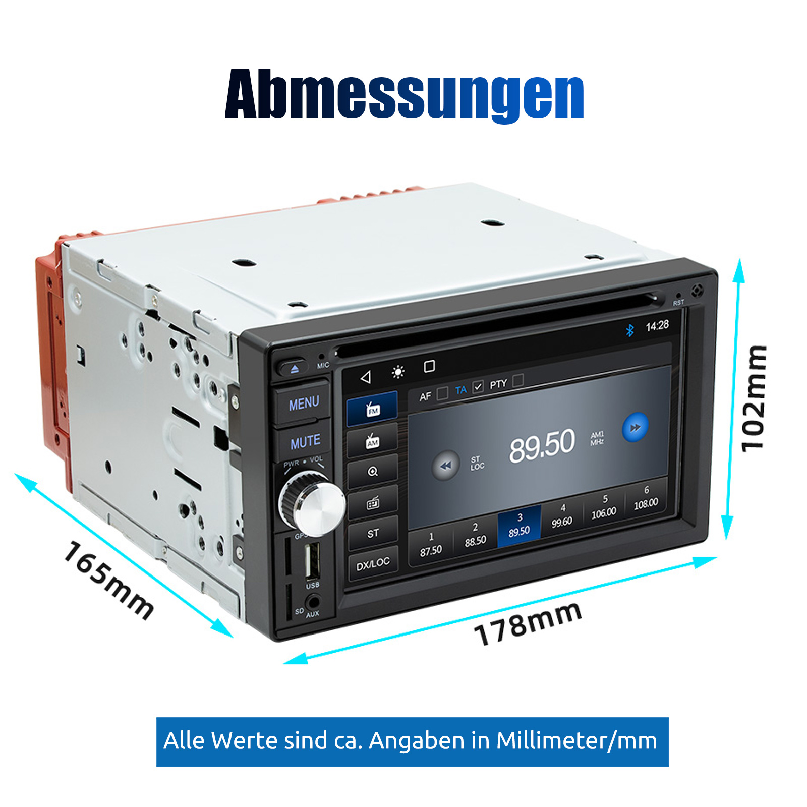 FM/AM/RDS-Radio und Bluetooth: Unterstützt Bluetooth 5.0, mit integriertem Mikrofon , damit Sie während der Fahrt freihändig telefonieren können. Unterstützt den Zugriff auf das Telefonbuch, die Musikwiedergabeschnittstelle usw. RDS unterstützt. Sie können 18 FM und 12 AM Radiosender speichern.Hilft Ihnen beim Zugriff auf die neuesten Nachrichten, Wettervorhersagen und Verkehrsinformationen.