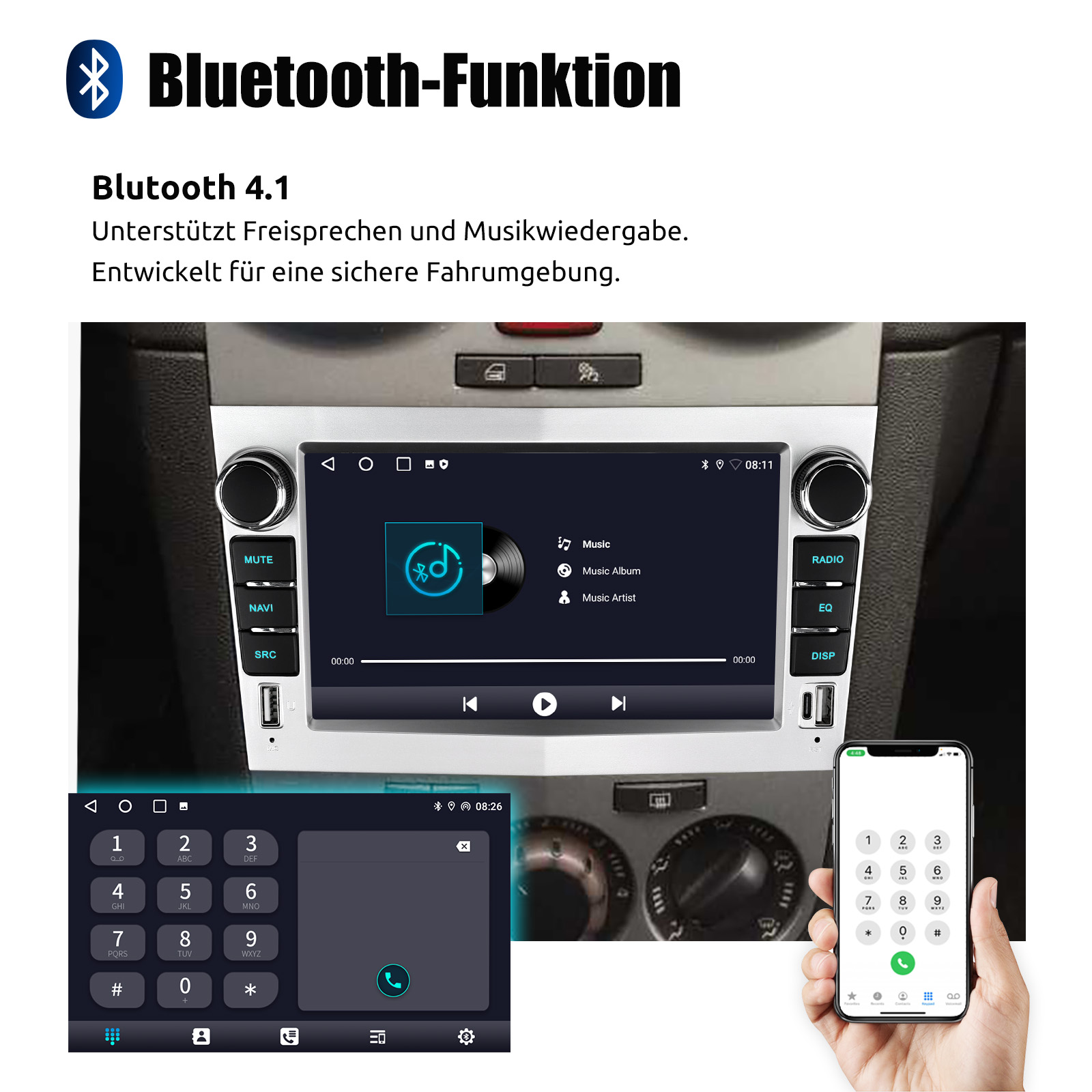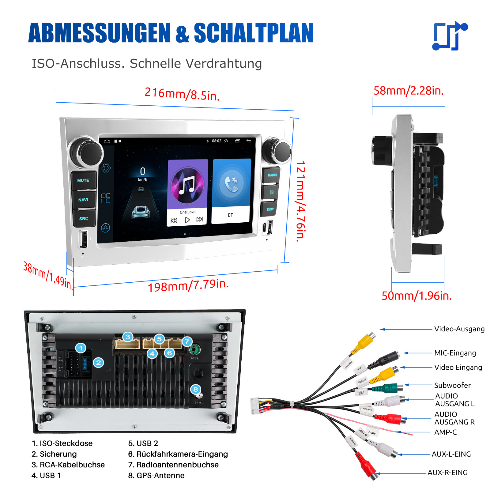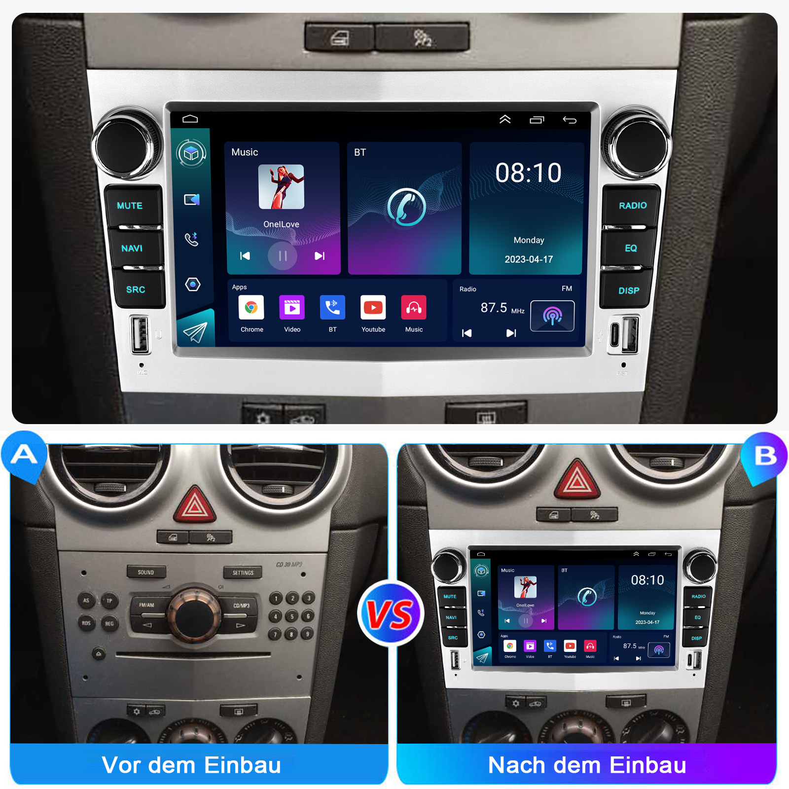 RDS/FM-Radio und Bluetooth und ASP Sound: Unterstützt Bluetooth 4.1, mit integriertem Mikrofon und Lautsprecher, damit Sie während der Fahrt freihändig telefonieren können. Unterstützt den Zugriff auf das Telefonbuch, die Musikwiedergabeschnittstelle usw. RDS unterstützt. Sie können 18 FM Radiosender speichern. Eingebauter ASP-Chip. Unterstützt 32-Band-EQ-Einstellung, die nach Ihren persönlichen Vorlieben eingestellt werden kann.Der Ihrem Originalsound sehr ähnlich ist.4 x 45W Verstärker, Surround-Sound und Subwoofer-Ausgang.