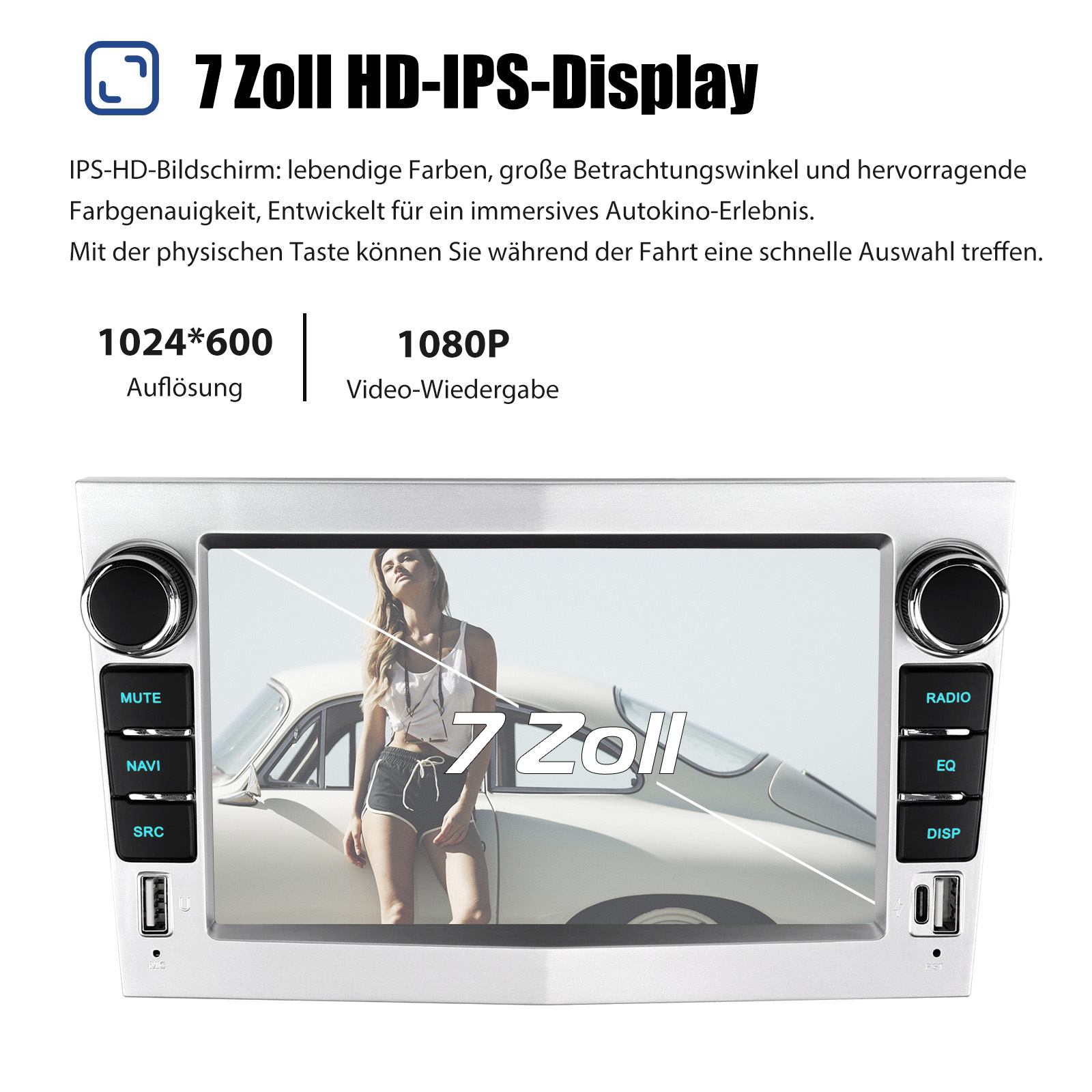 7 Zoll Android 14 Autoradio Für OPEL: Das Android Autoradio mit 7" 1024* 600 IPS HD kapazitivem Touchscreen, 2GB RAM und 64GB ROM ermöglicht das Herunterladen Ihrer Lieblings-Apps und -Videos, damit das Autofahren nicht mehr langweilig wird. Kein zusätzlicher Rahmen, kein Kabelwechsel, Plug and Play. Es wird mit Canbus geliefert und unterstützt die meisten Originalfunktionen: Lenkradsteuerung, Rückwärtssignale und Lesen von Original-Computerdaten usw.