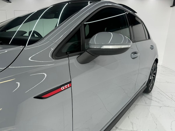Volkswagen Golf GTI 2021 A well-specified 2021 Volkswagen Golf GTI combining performance, advanced driver assistance systems and premium interior technology. Exterior This example sits on upgraded 19 Adelaide Black Diamond-Turned alloy wheels and features unique GTI-styled bumpers, body-coloured exterior trim and rear spoiler. IQ Light LED Matrix headlights with Dynamic Light Assist and dynamic cornering are complemented by LED rear combination lights with dynamic indicators, LED front fog lights and an illuminated front grille. Additional exterior features include a panoramic sunroof, rear tinted and heat-insulating glass, chrome twin exhaust tailpipes, remote electrically foldable mirrors with puddle lights and kerb-view function, front and rear parking sensors, rain and dusk sensors, and automatic coming-leaving home lighting. Interior & Comfort The cabin is equipped with R-Line front sport seats with integrated head restraints, brushed stainless steel pedals and black metal chrome decorative inserts. The Winter Pack adds a heated leather multifunction sports steering wheel with paddle shift. Climate control, ambient lighting, carpet mats, front centre armrest with storage and split-folding rear bench provide everyday practicality. Technology centres around the 10.25 Digital Cockpit display and Discover Pro Navigation System including streaming and internet, supported by App-Connect, wireless mobile phone charging and a Harman Kardon sound system. Additional features include keyless entry with start-stop button, adaptive cruise control, progressive steering and driving profile select. Safety & Driver Assistance Equipped with Travel Assist including Emergency Assist and Side Assist, Lane Change Assist, Dynamic Road Sign Display, Front Assist with predictive pedestrian protection, Adaptive Cruise Control and Car2X communication. Further systems include ESC, XDS electronic differential lock, front differential lock, ABS with hydraulic brake assist, driver alert system, electronic parking brake with Auto Hold, tyre pressure monitoring and multiple airbags with ISOFIX preparation. A high-specification Golf GTI offering strong performance credentials with advanced technology and everyday usability.