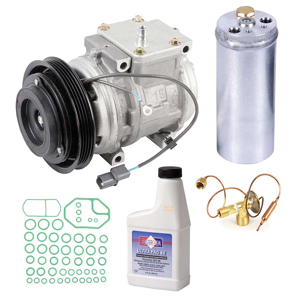 This 5 piece Premium Installers AC Kit includes an OEM new AC compressor, accumulator/drier, expansion device, a bottle of AC compressor oil and a pack of the correct o-rings for your system to prevent leaks. This kit is designed to include all of the right parts to make the repair process easier and save you money.