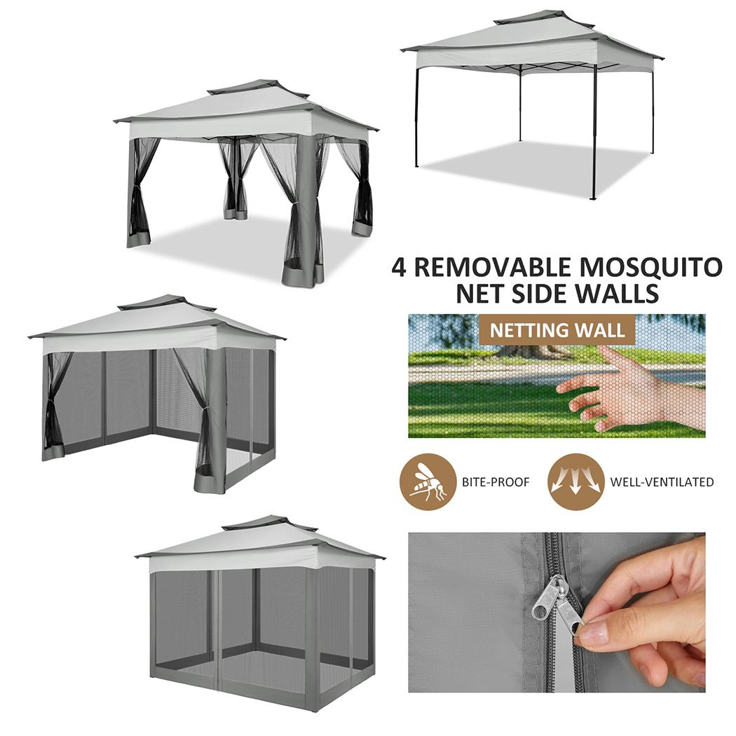 - Protection and air permeability: The Netting of This Outdoor Gazebo is High density and down to the ground which can offer you a space undisturbed by flying objects. It's breathable that you can have the fresh air through the Netting by the Mesh and the double roof of this gazebo canopy.