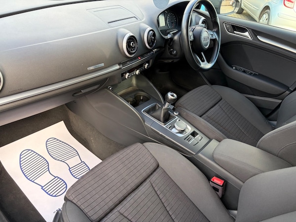 This Audi A3 TFSI Sport from 2017 boasts a clear vehicle history and has been cherished by only two owners. Powered by a 2.0 litre Euro 6 compliant petrol engine, this Sport trim model offers a dynamic driving experience. It comes equipped with the desirable Technology Package, featuring Bluetooth connectivity, and the Driver Assistance Package, which includes Blind Spot Assistance and Adaptive Cruise Control. For effortless manoeuvring, it benefits from the Audi Parking System Plus, Park Assist, and front and rear parking sensors, all complemented by a striking LED Exterior Lighting Pack. The impressive acceleration of this A3, reaching 0 to 62mph in just 6.9 seconds, sets it apart from many other vehicles in its class. Furthermore, the generous boot space provides excellent practicality for everyday use and longer journeys, indicating its superior versatility compared to similar models. Very well cared for Audi A3 Great condition inside and out Full service history with all paperwork 11 months mot Runs and drives superbly, like new! 2 keys Sold with 6 months warranty Please call us today to arrange a viewing and test drive! Features Include: , adaptive cruise control including pre-sense front, audi parking system plus, audi sound system, park assist, rear parking sensors, technology package - advanced, audi hill hold assist, driver assistance package, headlights - high-beam assist, led exterior lighting pack, 17in alloy wheels - 5-arm kinetic design, door mirrors - heated-electrically adjustable-folding, comfort and sound package, rallye cloth - sports seats - black, storage package, technology package, audi side assist, bang and olufsen sound system, advanced key, matrix led headlights with led rear lights and dynamic front and rear indicators, rear side airbags, steering wheel - 3-spoke leather-multifunction-flat bottomed, sport suspension, 17in alloy wheels - 5-arm design, 2 x usb charging ports and 1 x aux-in, 6-airbag system with knee airbag for driver, 8 passive speakers, aluminium interior elements, aluminium window trims, anti theft locking wheel bolts, anti-theft alarm, audi connect infotainment services - 3 month trial, audi drive select, audi smartphone interface, bluetooth interface, body coloured door mirrors, cd drive, chrome-plated exhaust tailpipe trim, colour drivers information system - dis, cruise control, dab digital radio, door mirrors - electrically adjustable and heated, door sill trims with aluminium inlay, dual-zone