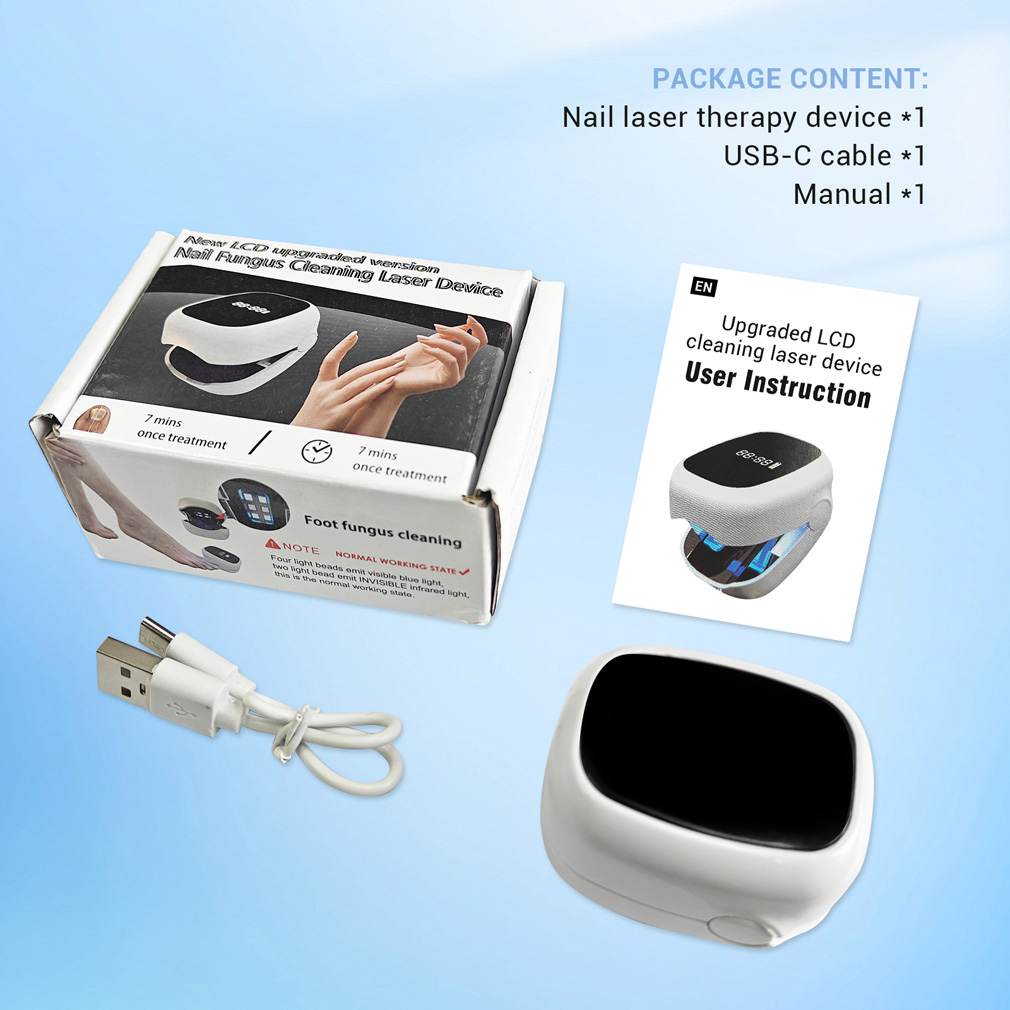 Combines 940nm invisible infrared laser and 500nm visible blue light for enhanced therapeutic performance. 940nm infrared laser stimulates oxygenation by interacting with iron in hemoglobin, accelerating healing and tissue recovery. 500nm blue light provides powerful antimicrobial effects, helping to keep infected nails and surrounding skin clean and germ-free.