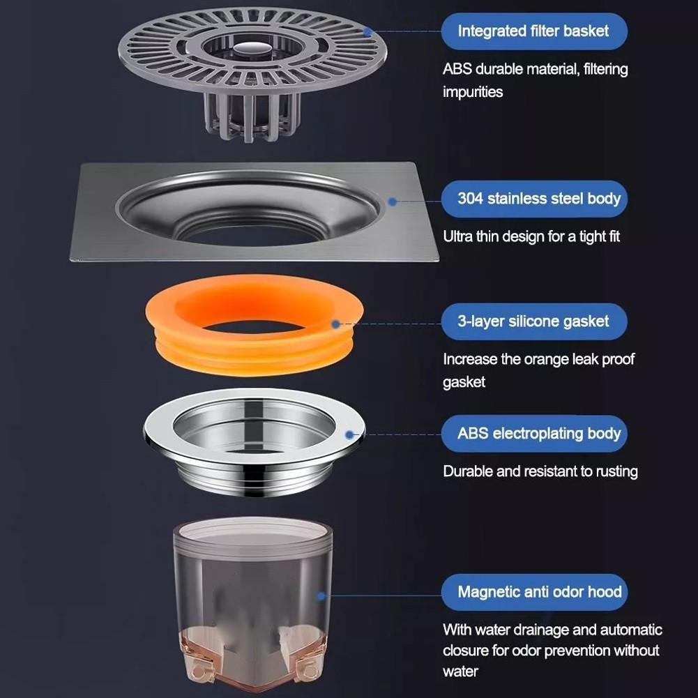 Caractéristiques:* Matériau robuste: Fabriqué en acier inoxydable 304 de haute qualité, cette crépine de vidange de sol est robuste et résistanteà la, une utilisationà long terme sans rouille ni déformation.* Fonction: Conçue avec plusieurs couches de maille, cette passoire empêche efficacement les odeurs désagréables de monterà travers le drain tout en permettantà l'eau de circuler librement. Dites adieu aux odeurs indésirables dans votre cuisine ou votre salle de bain!* Passoire de vidange de sol: cette passoire est spécialement conçue pour plancher draine, lui permettant d'attraper efficacement les cheveux, les particules alimentaires et les débris qui pourraient obstruer votre drain. Gardez votre drain de sol propre et exempt de blocages potentiels.* Attrape-cheveux: cette passoire empêchera les cheveux de descendre dans le drain et de causer des blocages. Dites adieu aux tracas liés au débouchage des drains remplis de cheveux!* Accessoires de salle de bain: cette passoire de drain de sol est non seulement fonctionnelle, mais ajouteégalement une toucheéléganteà votre salle de bain. Son designélégant et moderne complète n'importe quel décor de salle de bain, pour ce qui en pour fait un complément parfaità votre collection d'accessoires de salle de bain. Spécifications:* Nom du produit: passoire de vidange de sol* Matériau: acier inoxydable 304+ ABS* Taille: 10* 4* 3,8 cm* Couleur: argent+ noir Contenu de l'emballage: 1* passoire de vidange de sol Note: 1. La couleur réelle de l'article peutêtre légèrement différente des photos présentées sur le site Web en raison de nombreux facteurs tels la luminosité de votre moniteur et la luminosité de la lumière. 2. Veuillez permettre un légerécart de mesure manuelle pour le données.
