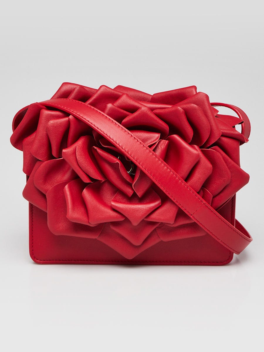 ![]() ![]() ![]() ![]() ![]() ![]() ![]() ![]() ![]() ![]() Description This clutch is an eye-catching evening accessory. From Christian Louboutin, this clutch features striking red leather with a large rose motif and CL logo. The compact interior is large enough for your essentials on a night out on the town. Retail price is $4290 Condition The exterior is clean and beautiful iwith minor scuffing and light creasing to the petals. The glazed edges have light rubbing on the corners and the shoulder strap is lightly creased. The hardware has some protective plastic in place but there are faint scratches on the CL logo. The interior has minor scuffs but is otherwise clean and in excellent condition. Details