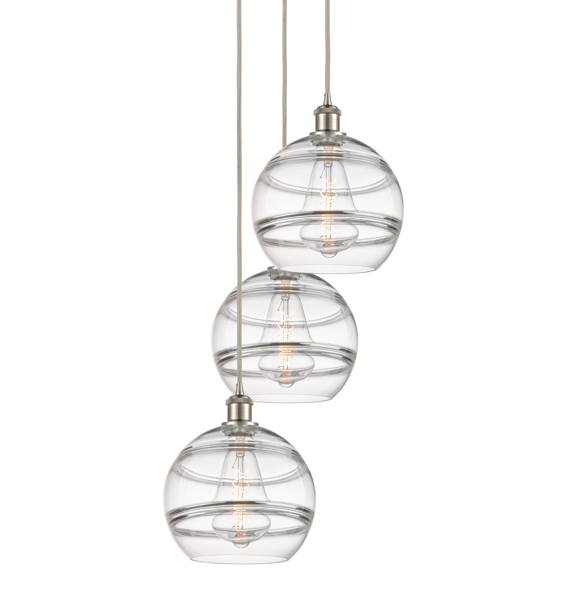 - Fixture includes (1) 6" and (2) 12" downrods