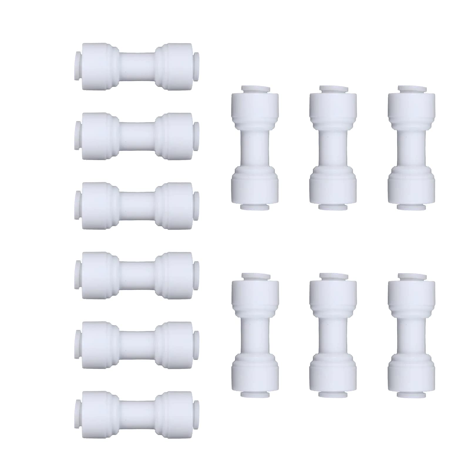 Quick-connect fittings are the fastest way to join multiple materials without the need for additional tools, solder, unions or glue. Compatible with PEX, polyethylene, nylon, or soft copper in any combination. These plastic push-to-connect fittings are easy to use and shorten install time. Push-to-Connect Union is manufactured from white POM (Polyethylene) and equipped with food grade NBR O-rings utilizing push-fit technology to make an easy, reliable, leak-free connection. Developed to satisfy a wide range of applications it can be used on plastic or soft copper tubing. They are also ideal for use in Agricultural Spraying, Farm/Dairy Equipment,Car Wash and a variety of other applications. EASY INSTALLATION-To install, insert the tube into the fitting and the stainless steel teeth bite down and grip tight, while a specially formulated O-ring compresses to create a perfect seal. Disassembly is just as fast by pushing down on the collar with two fingers and pulling the tubing outward allowing the fittings and valves to be easily changed and reused. "push connect water fittings Working pressure and temperature: Max. 150 psi at 70° F Max. 60 psi at 140° F "