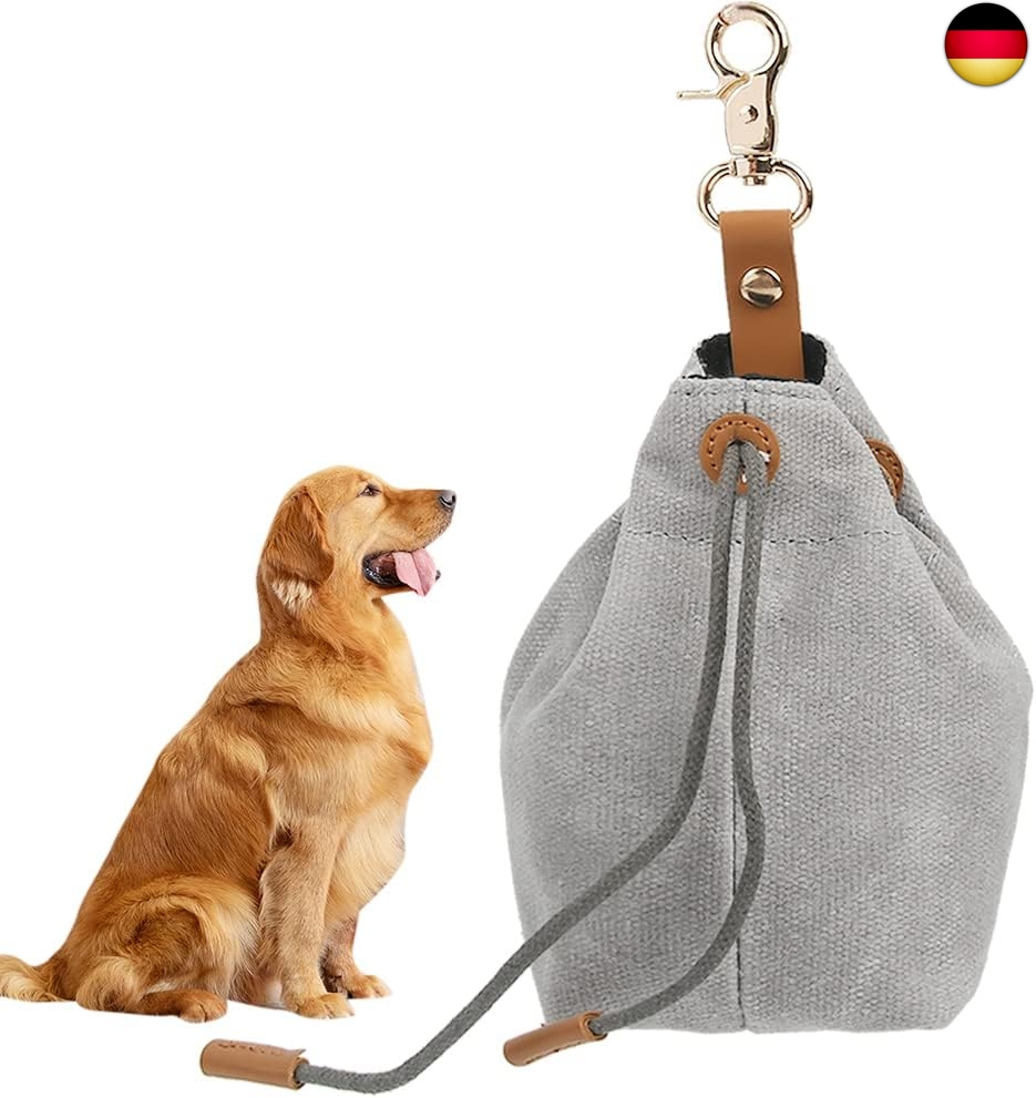 Leckerlibeutel für Hunde, Futterbeutel Hunde, Schrumpftaschen mit Clip Schnalle, Hundebeutel Leckerli, Futtertasche, für Haustierspielzeug, Leckereien, für Welpen-Training Reisen, Gehen -Grau
