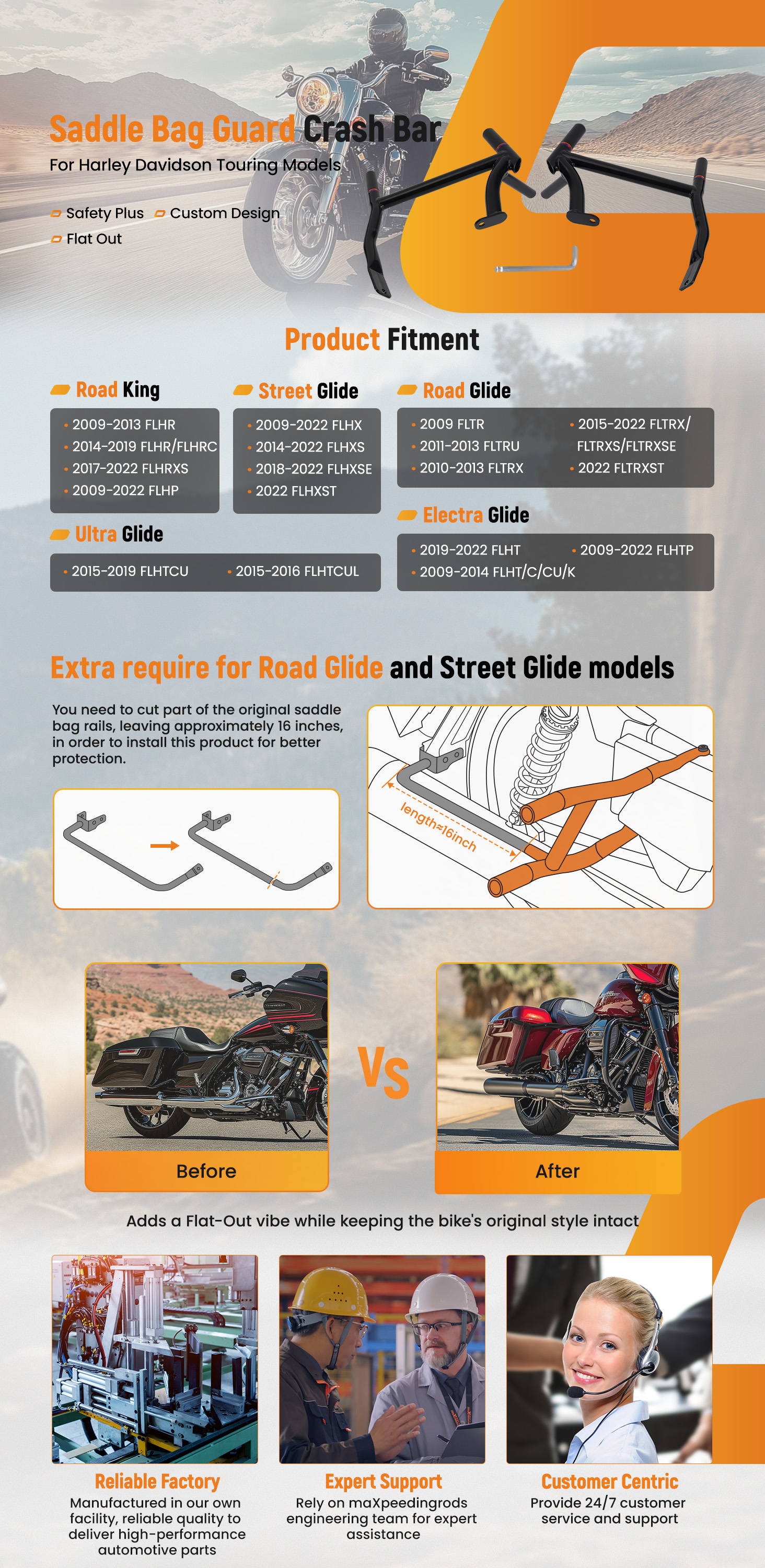 For Electra Glide/For Ultra Glide: FLHT (2019-2022), FLHT/C/CU/K (2009-2014), FLHTCU (2015-2019), FLHTCUL (2015-2016), FLHTP (2009-2022)