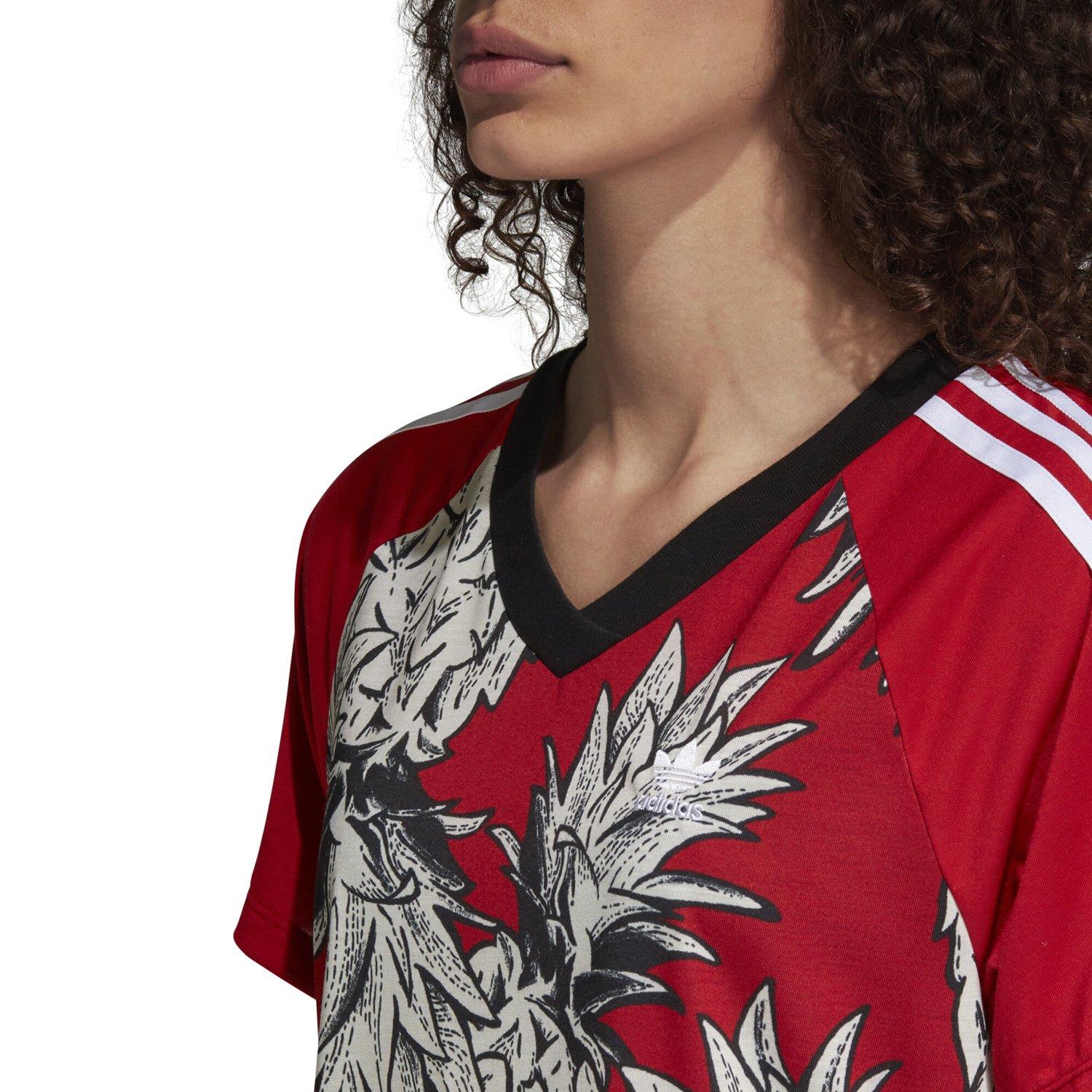 This season The FARM Company is inspired by passinho, the revolutionary Brazilian street dance. A vibrant collage of graphics come together on this t-shirt. Made of soft jersey, it pairs a pineapple print on the front with a star print on the back.