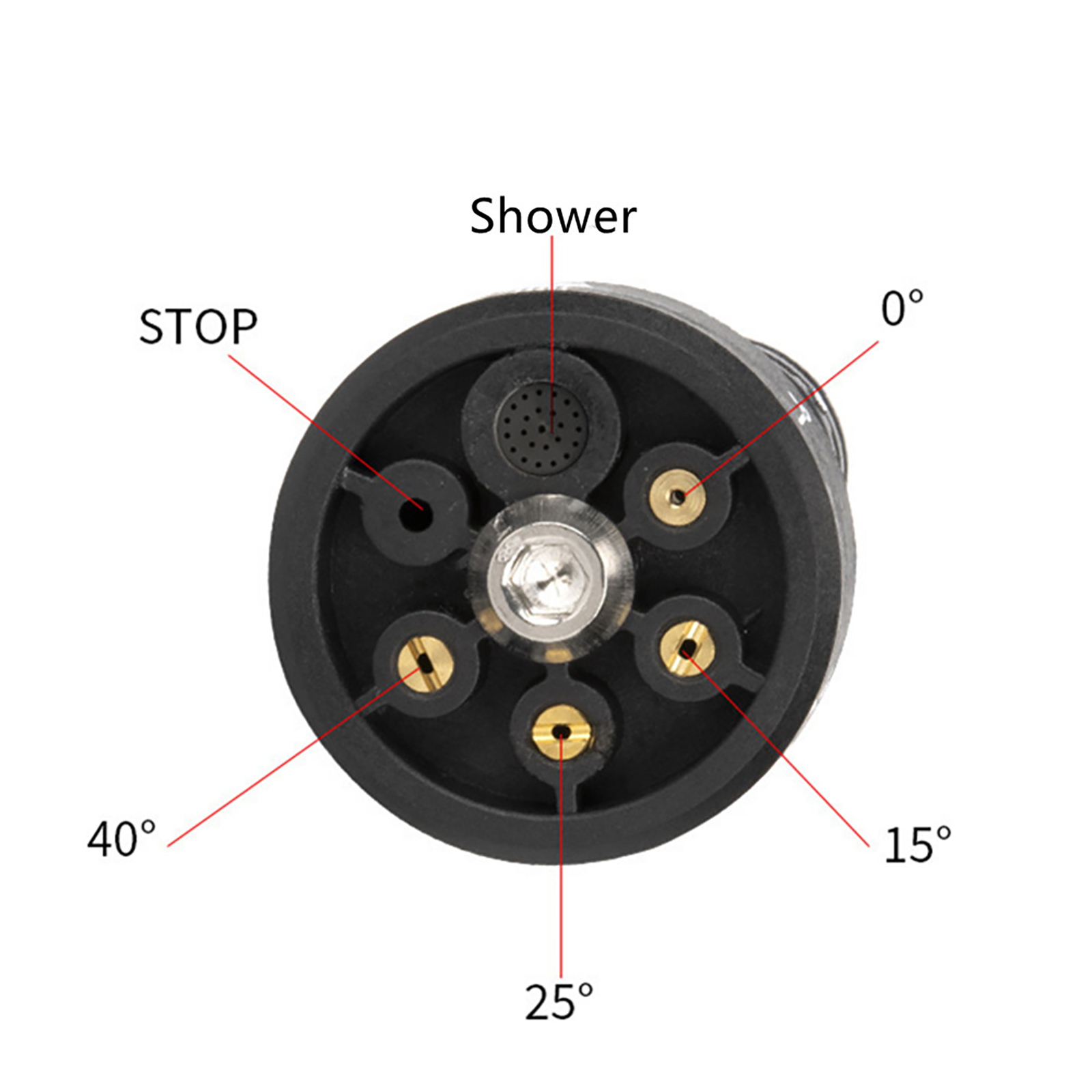 This washer nozzle has 6 modes to choose from 0 degrees, 15 degrees, 25 degrees, 40 degrees, shower mode, direct injection.