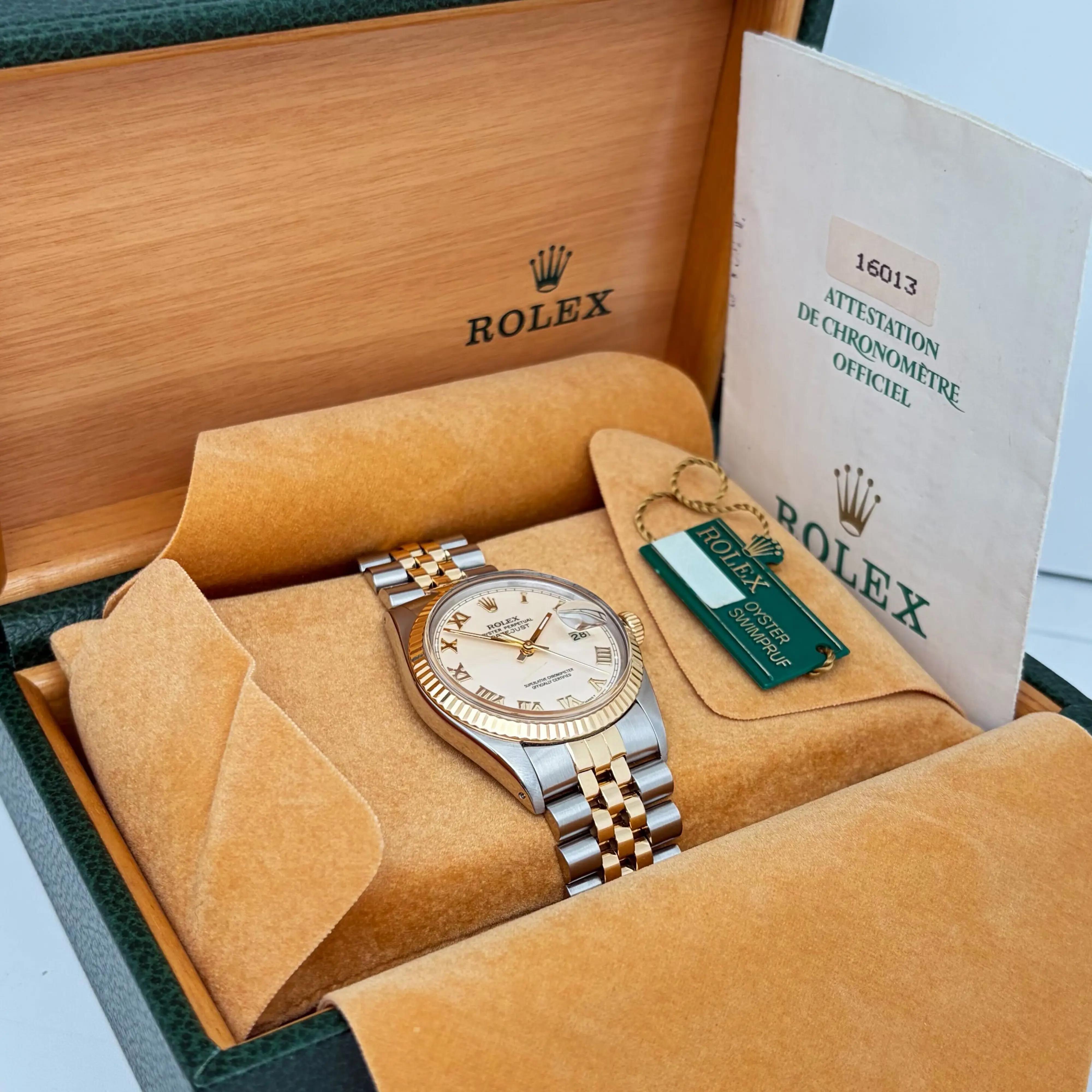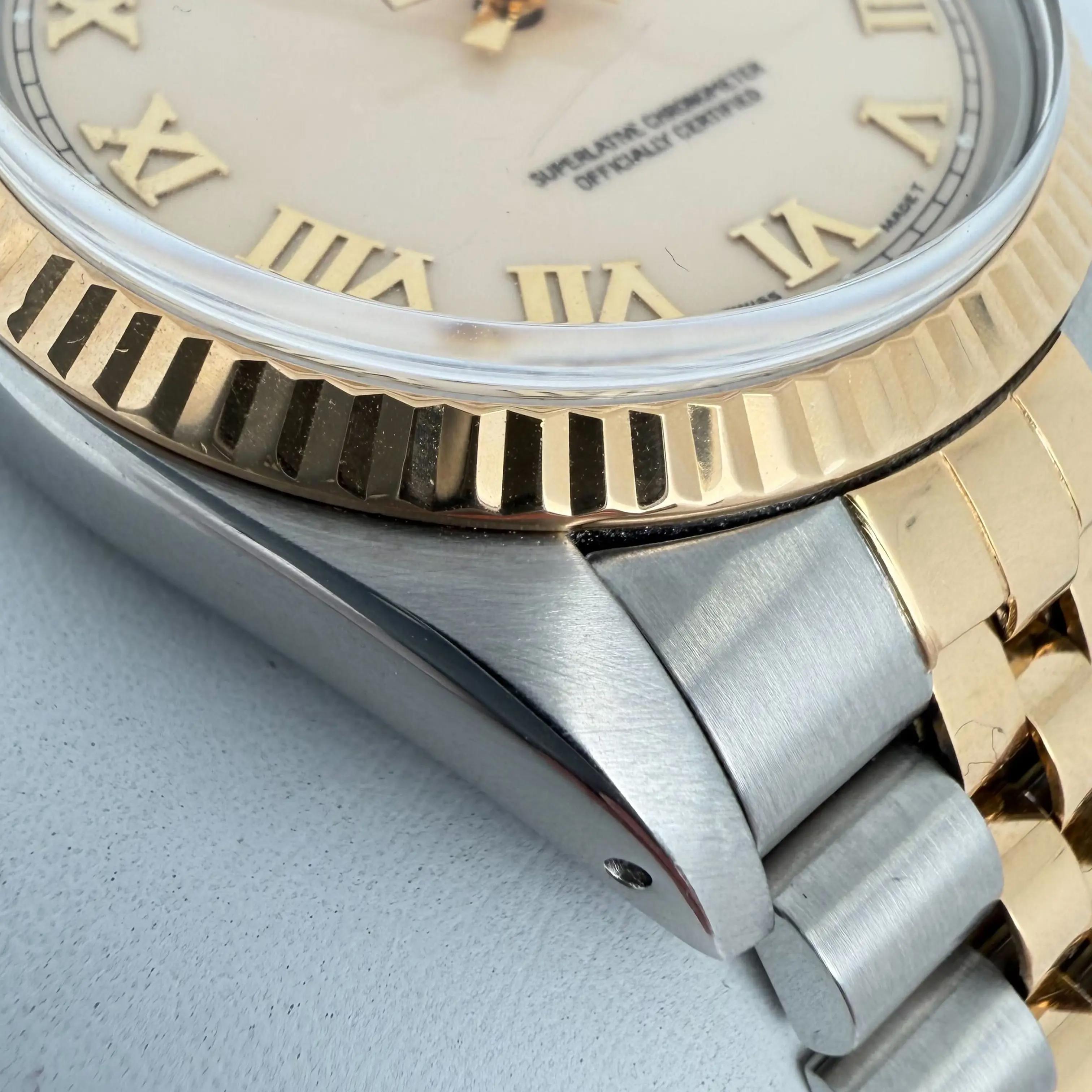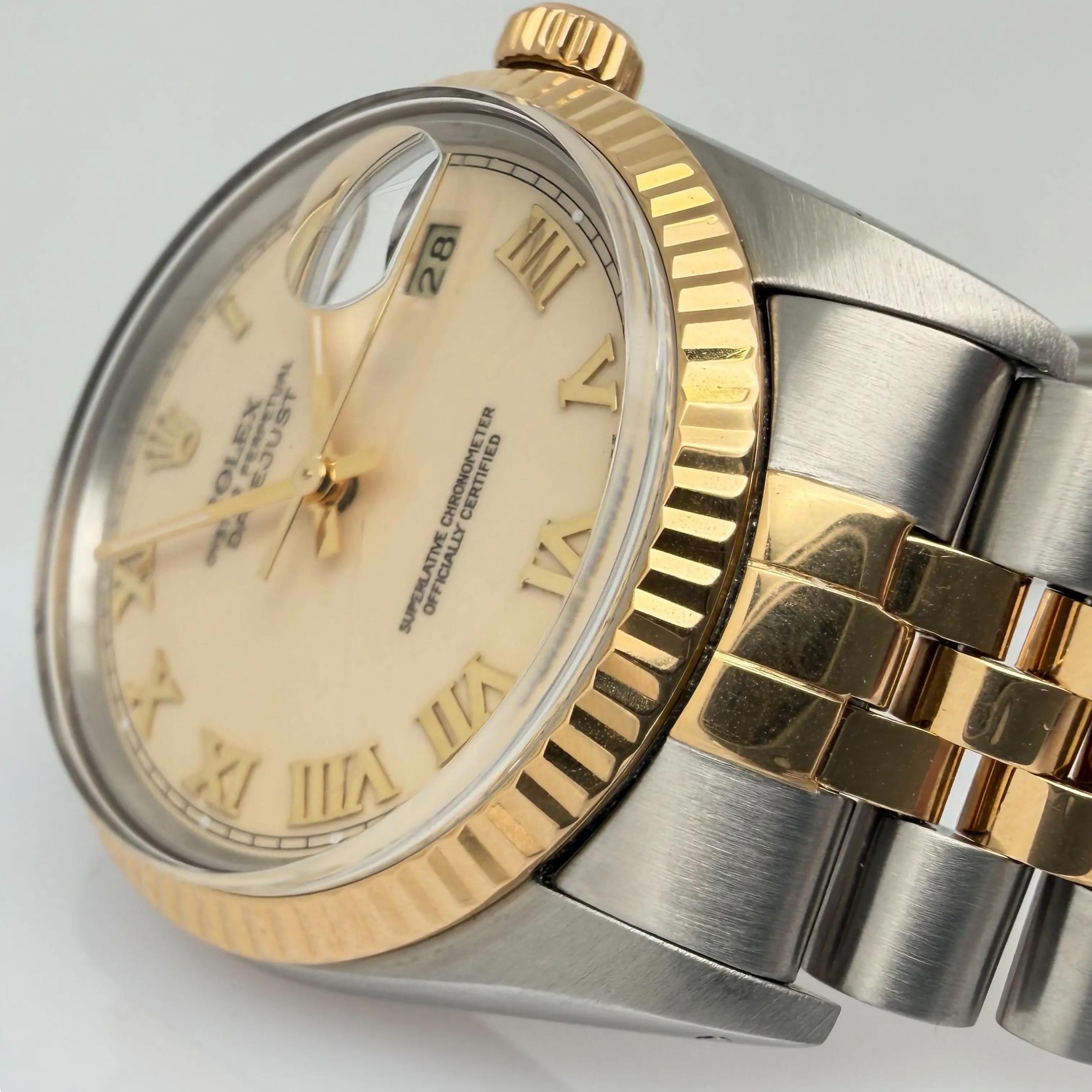 1987 Vintage Rolex 16013 Datejust 36 18K Gold Steel Cream Roman Dial Watch
