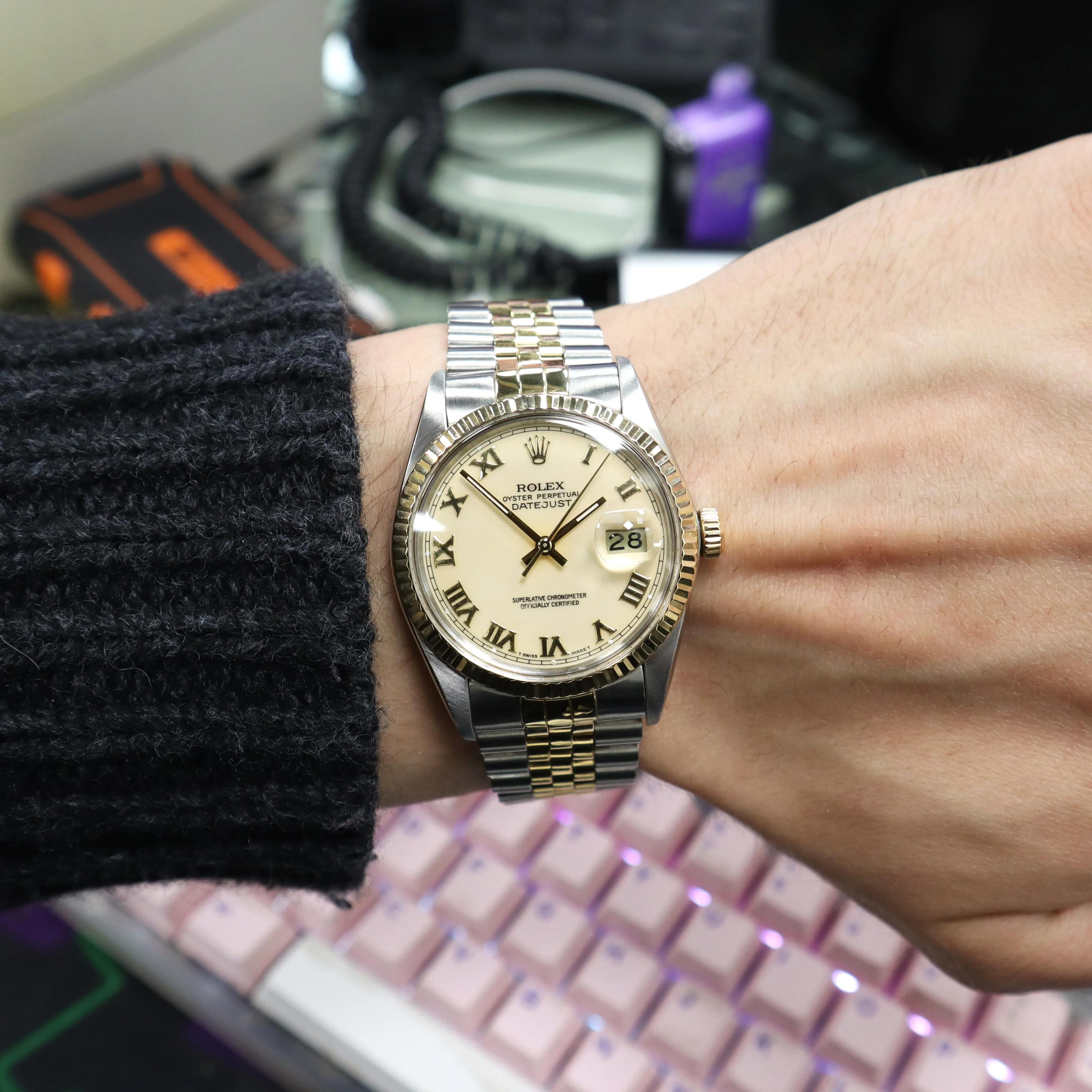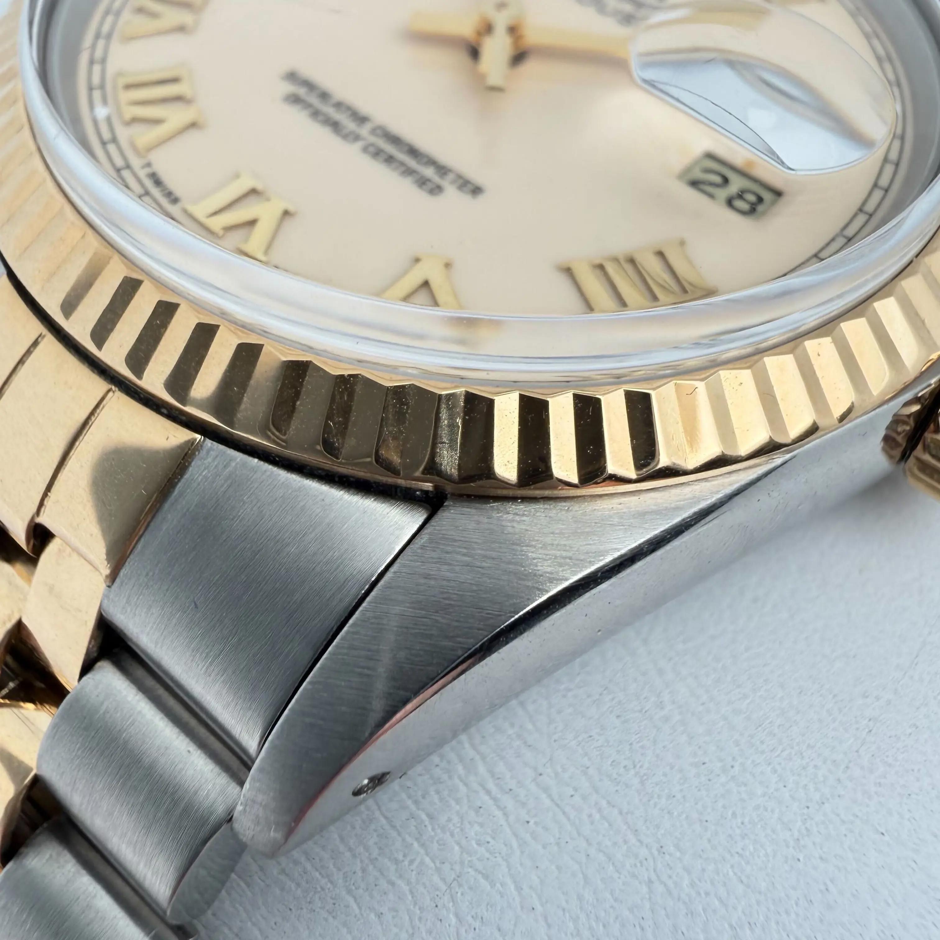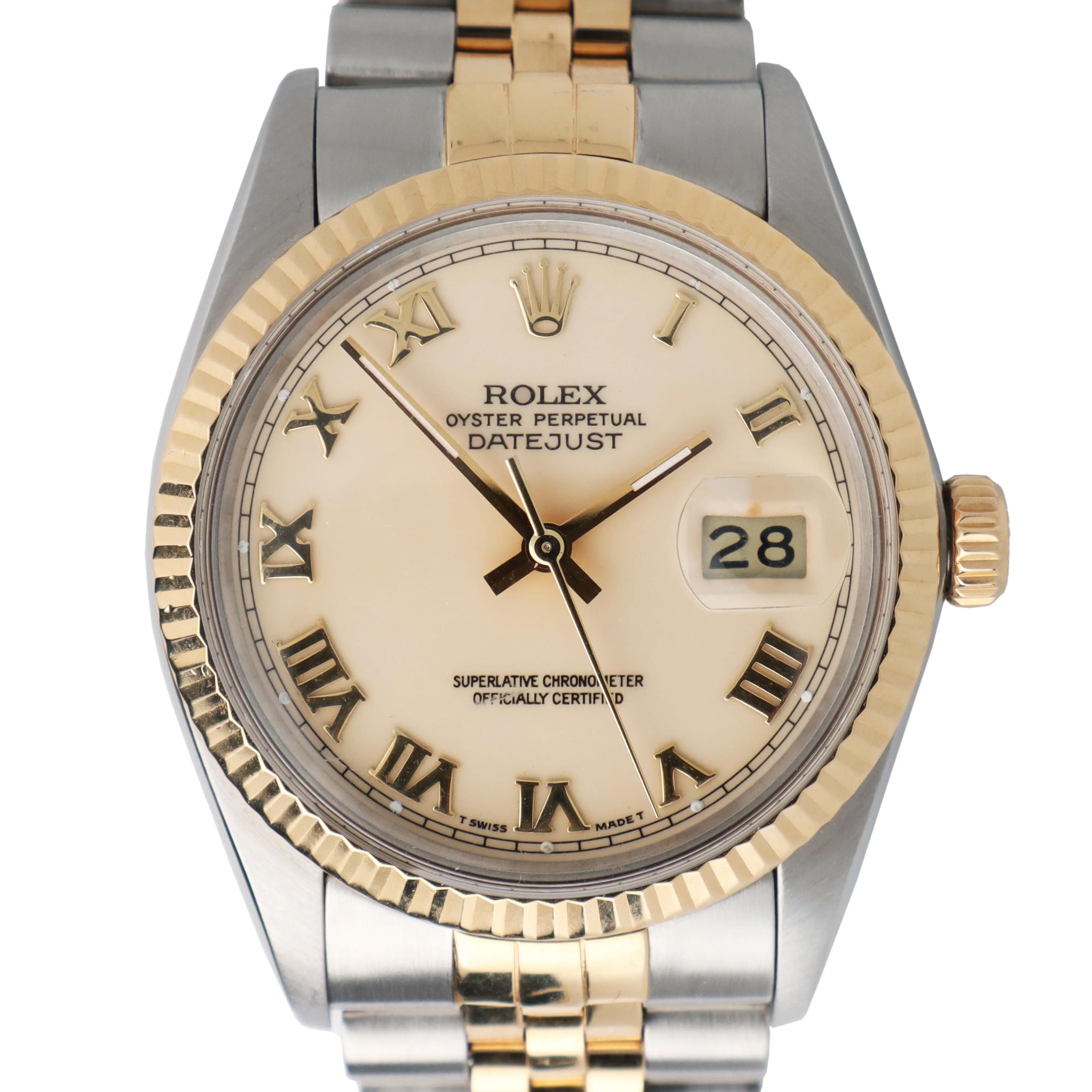 1987 Vintage Rolex 16013 Datejust 36 18K Gold Steel Cream Roman Dial Watch