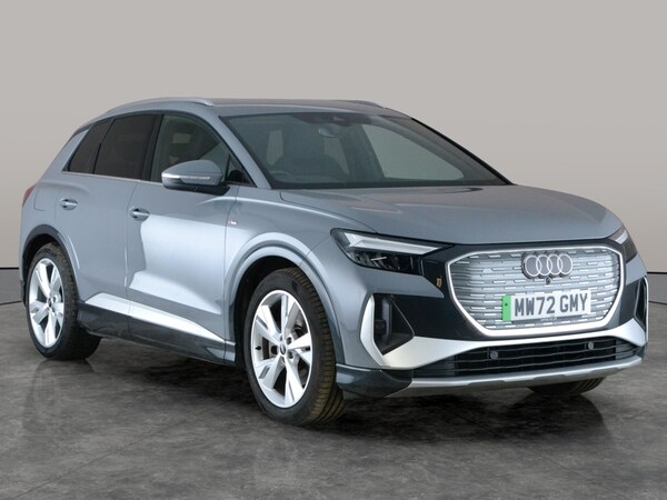 Experience the Audi Q4 E-tron a stylish electric SUV packed with premium features. Enjoy MMI Navigation Plus, crisp Apple CarPlay, and the comfort of heated S-Line embossed sport seats. Stay connected with built-in WiFi and Bluetooth audio streaming, and drive safer with lane departure warning, traffic sign recognition, and LED headlights. Cruise control and versatile driving modes add to your ease, while the digital display and 3-zone climate control keep every journey smart and comfortable. Make the leap to electric sophistication with this impressive Audi. 1 service recorded, last serviced on 17/07/2025 at 24,946 miles. MOT to 31/01/2027. Visit our website for service history, online valuation, full vehicle specification plus multiple images. Certain features listed may be available via subscription packages at extra costs, please consult with Audi for details. This vehicle is VAT qualifying. Any feature/option specified here is from 3rd party data. We cannot guarantee the accuracy of any specification supplied by a 3rd party. We recommend that you physically check the specification of the vehicle on site prior to purchase. This information does not form part of the buying contract. Terms & Conditions apply. We have over 2,000 cars available from our 10 national branches, check our website to see all our stock. Our Trustpilot rating is 4.4/5 with over 9,000 reviews.