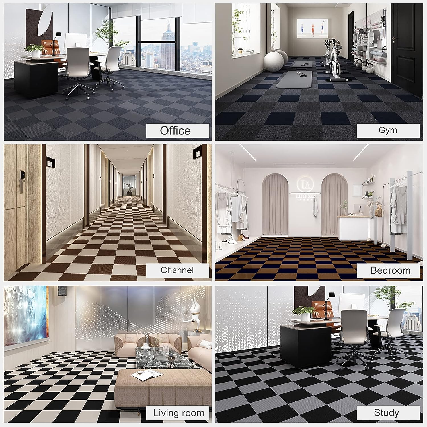 Durable, Safe and Non Slip: these peel and stick carpet tiles are made of polyester fiber, with soft surface, comfortable feet, firmness, durability, non slip, easy maintenance and long term service for you.