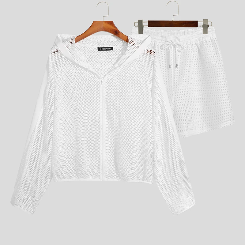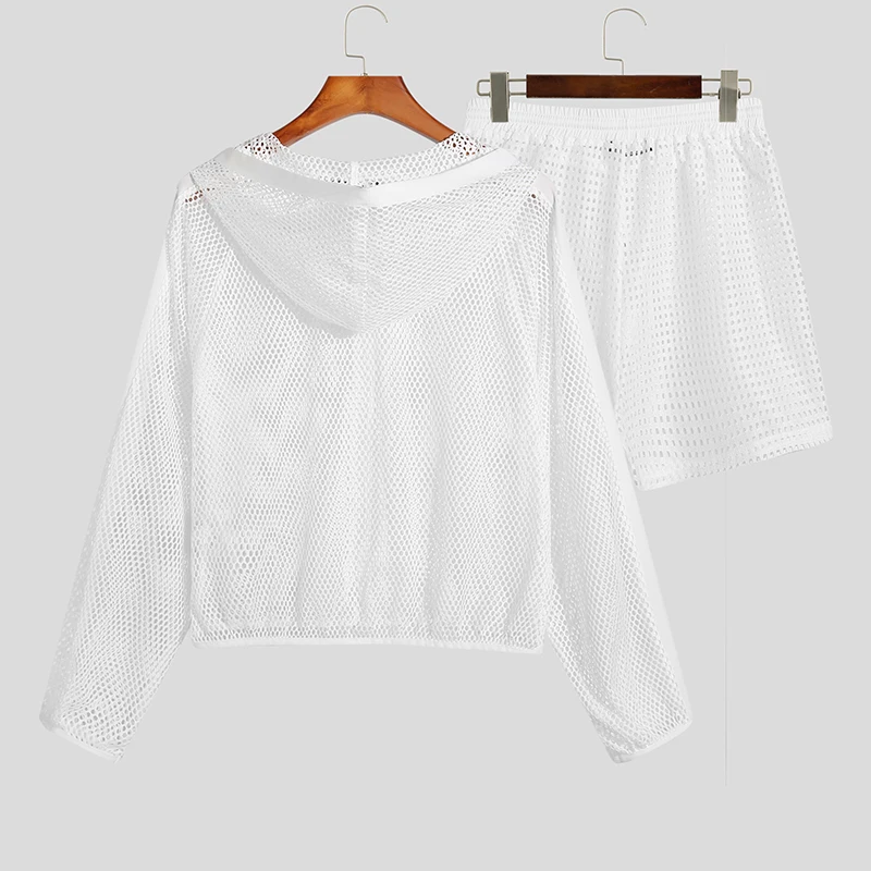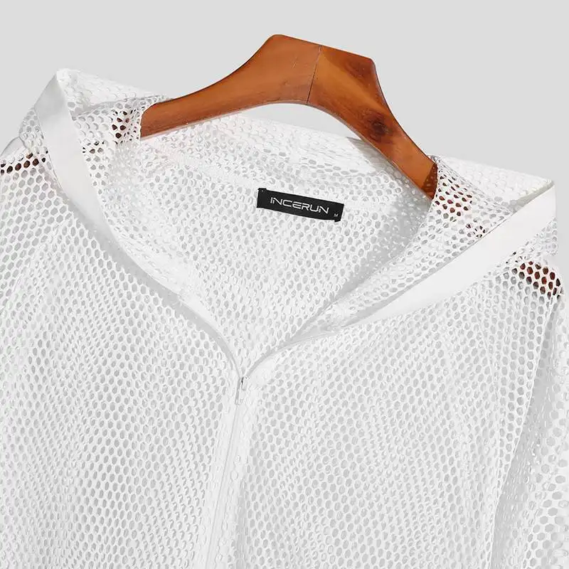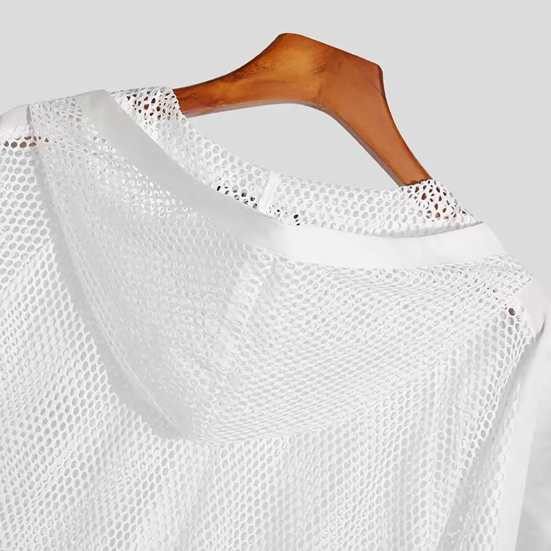 Size:S,M,L,XL,2XL,3XL,4XL,5XL Fabric Material:100%Polyester Colour:White Occasion:Leisure Pattern:Transparent Product Description:Men's Transparent Mesh Casual Sets