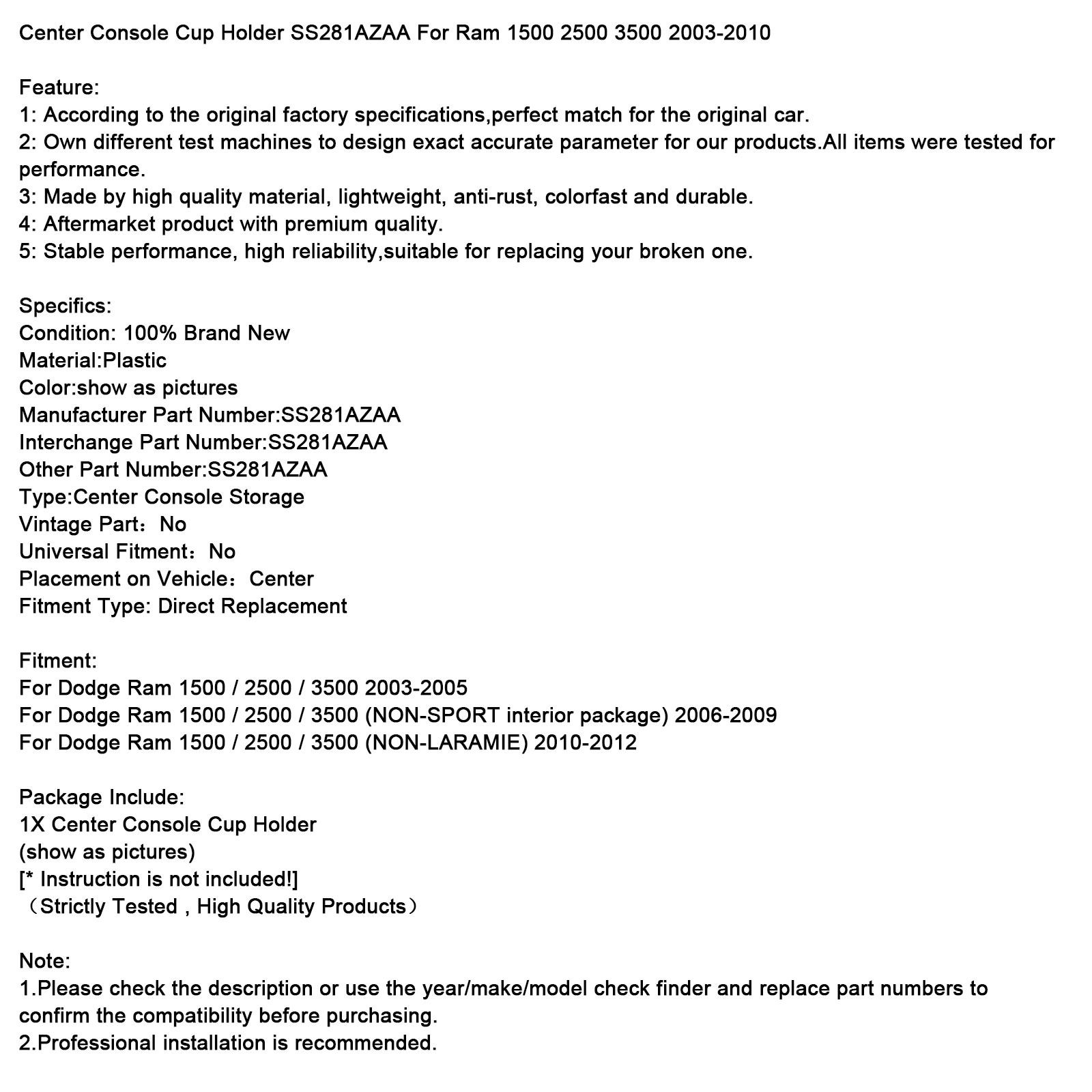 Center Console Cup Holder Small Hole SS281AZAA For Ram 1500 2500 3500 2003-2010