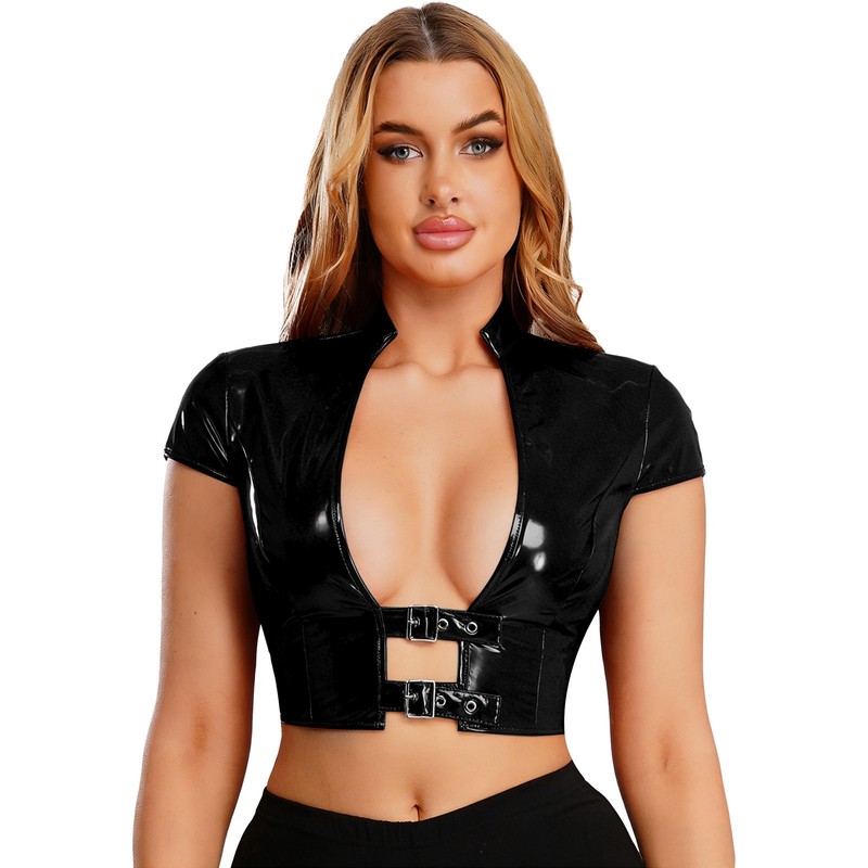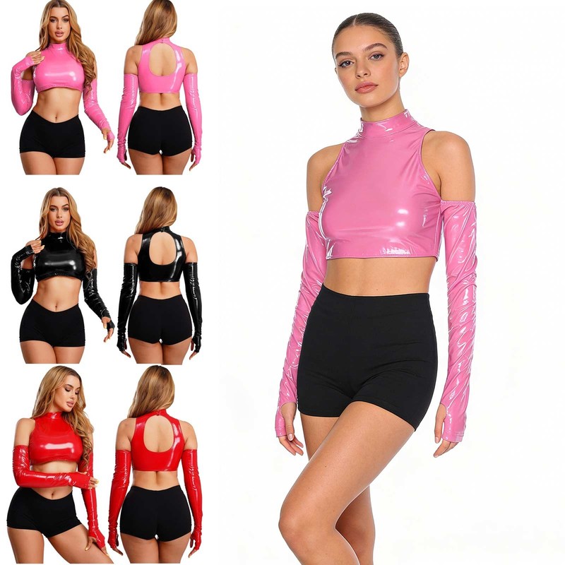 This glossy crop top is perfect for club nights, parties, or on-stage performances, helping you make a glamorous statement.