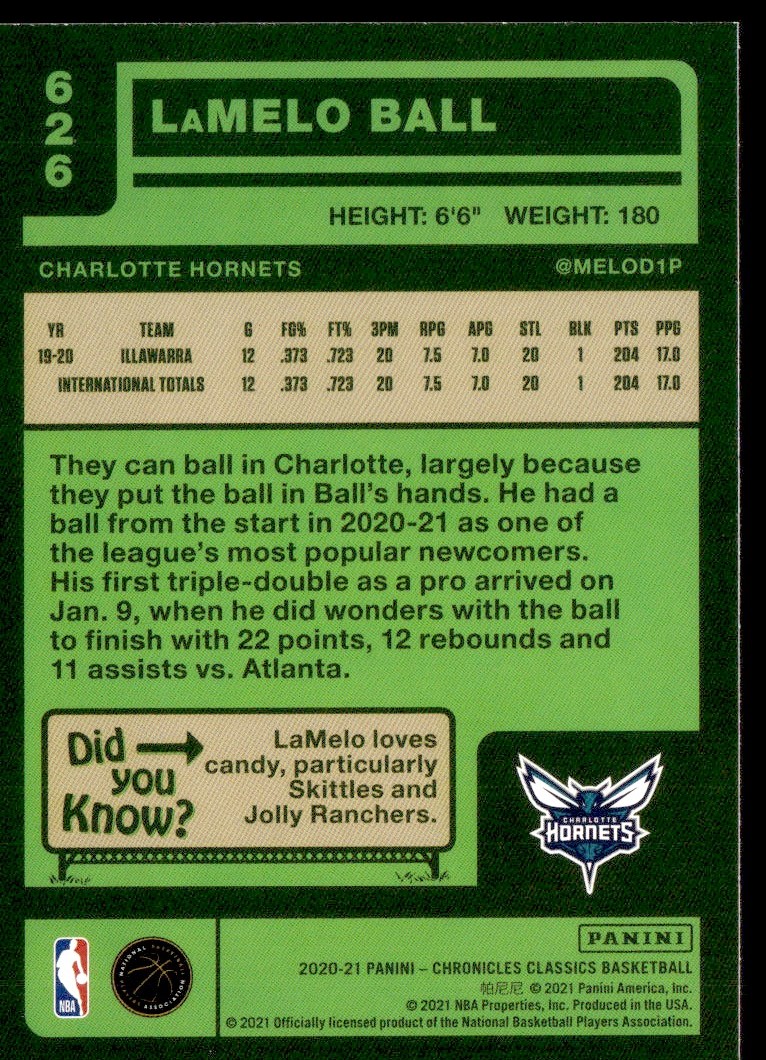 2020-21 Panini Chronicles LaMelo Ball Rookie Charlotte Hornets #626
