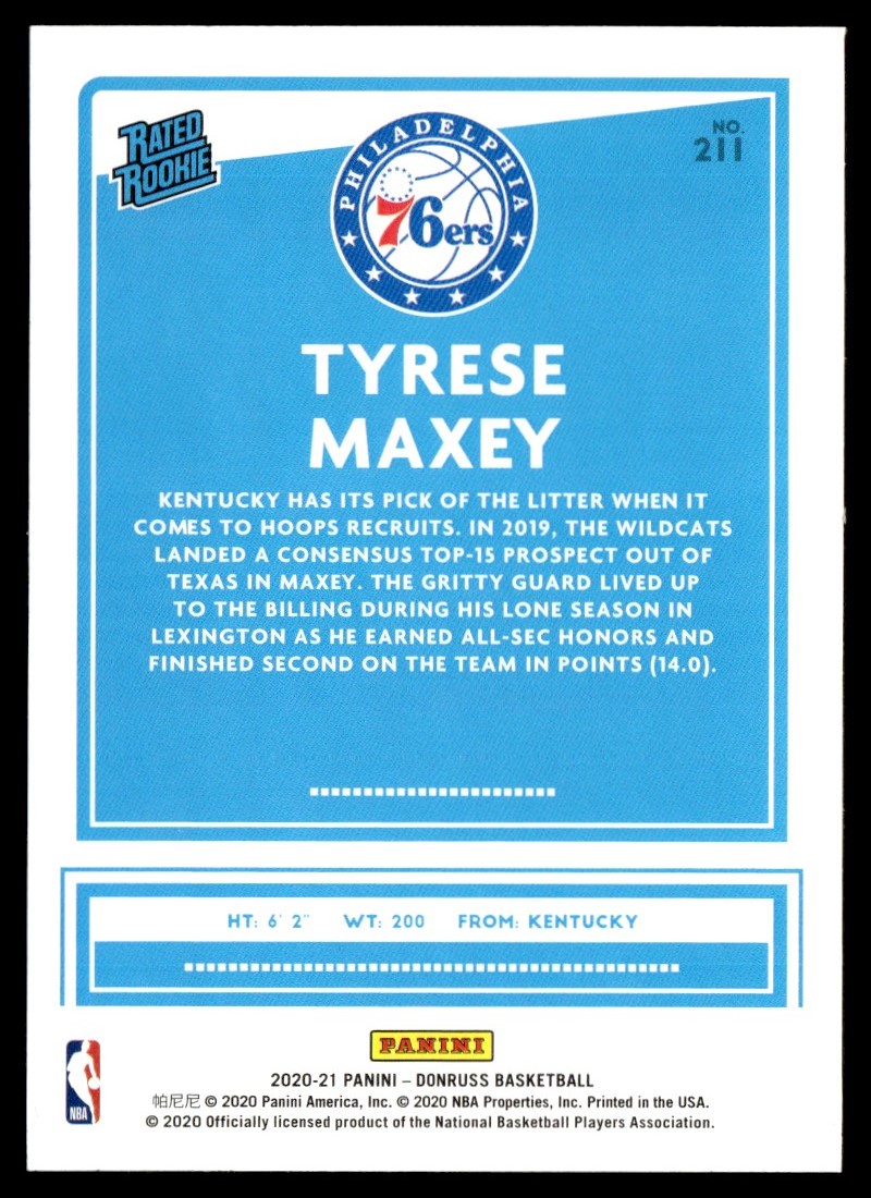 2020-21 Donruss Rated Rookies Tyrese Maxey Rookie Philadelphia 76ers #211