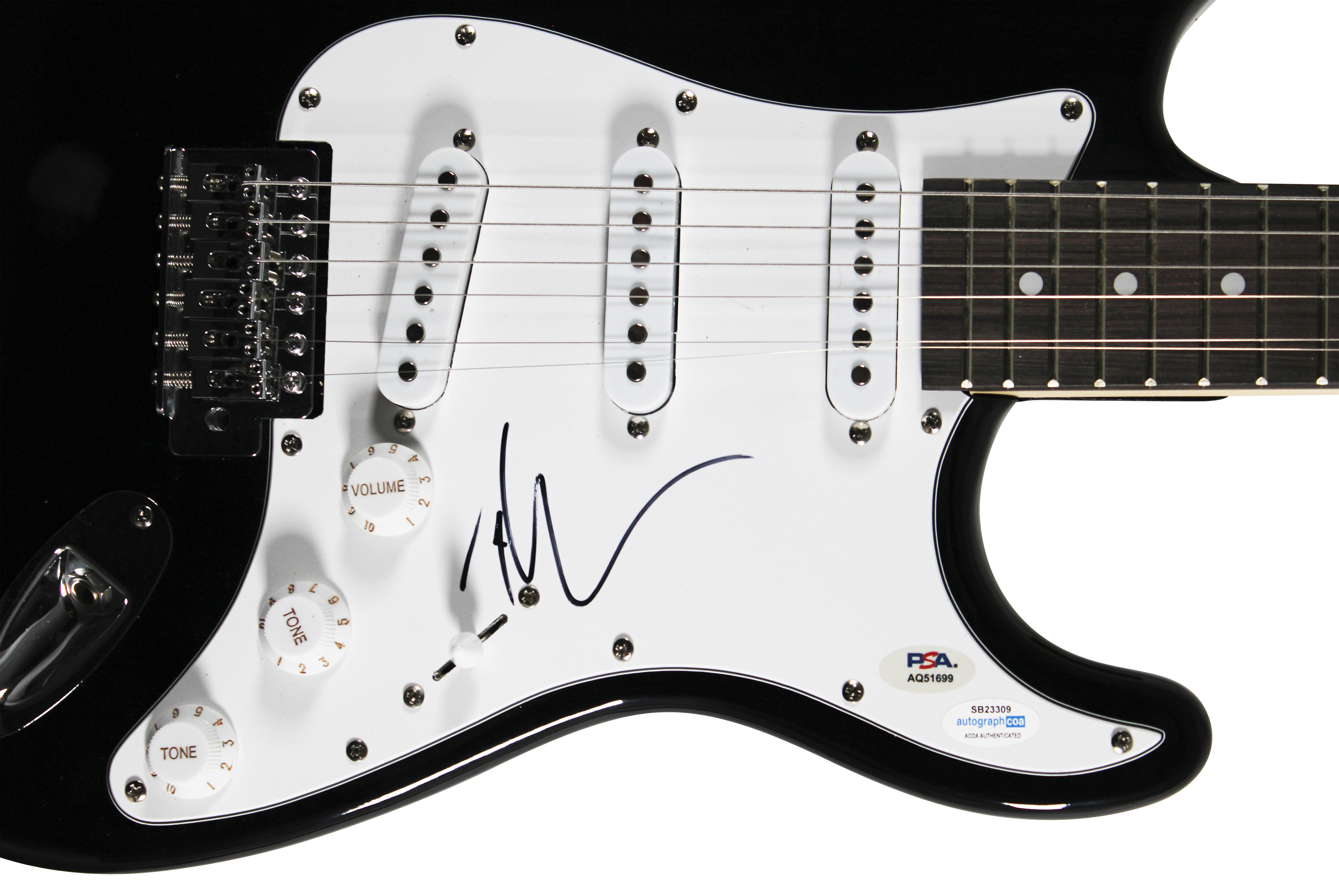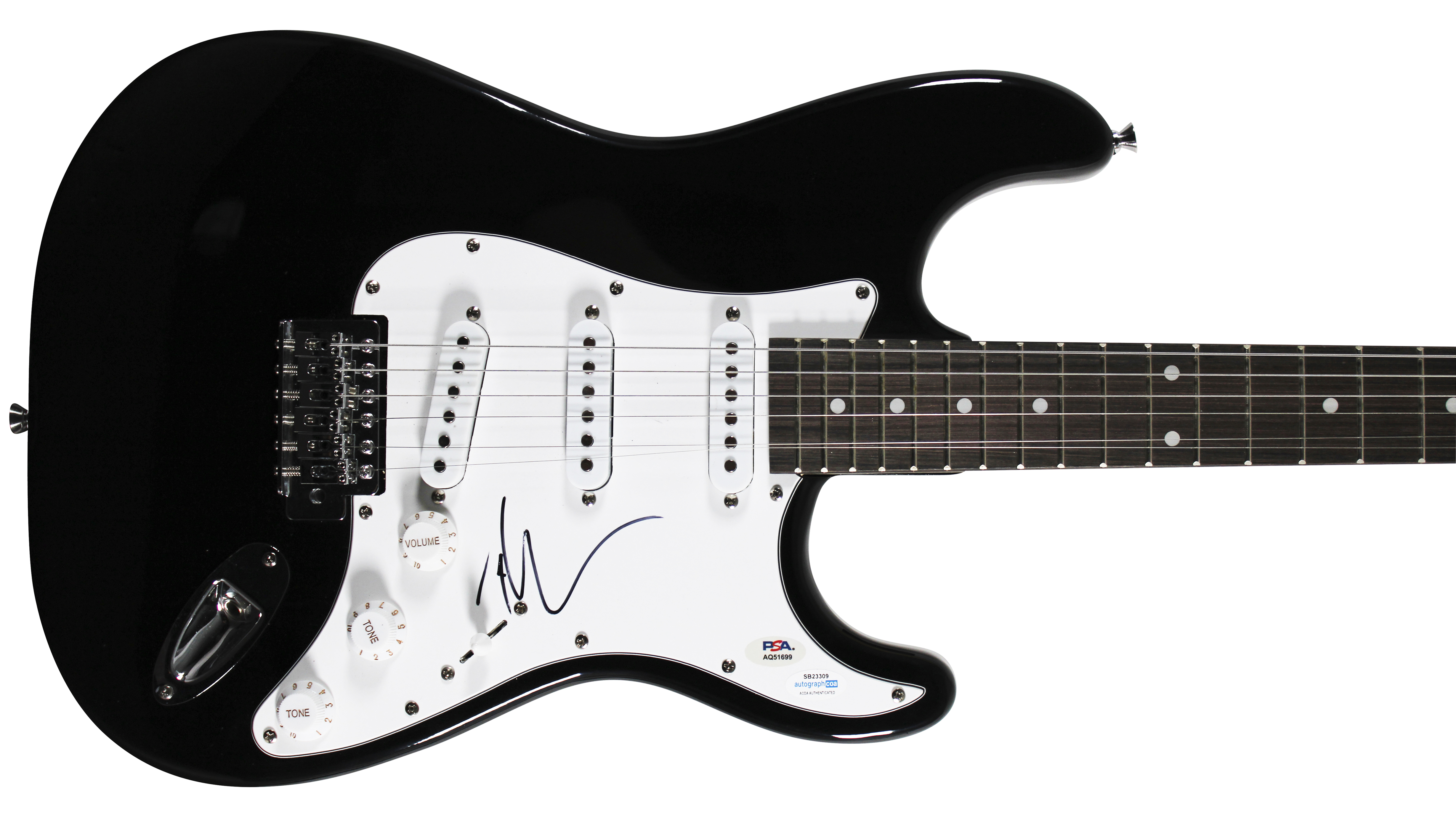 This Autographed Black Electric Guitar has been Personally Signed by Tim McGraw. This item is 100% Authentic and comes with a PSA/DNA Certification numbered Hologram. Please note that PSA/DNA no longer provides serial-numbered COA cards, and the attached PSA/DNA sticker will serve as the complete authentication for this item.The authenticity can be verified on Professional Sports Authenticators website. The signature is slightly smeared. Please refer to pictures for item's condition.